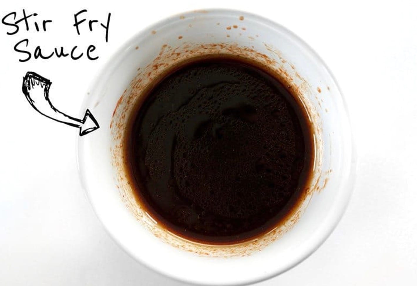 Mix the stir fry sauce first. In a small bowl, blend soy sauce, sesame oil, sriracha, and brown sugar. Set it aside.