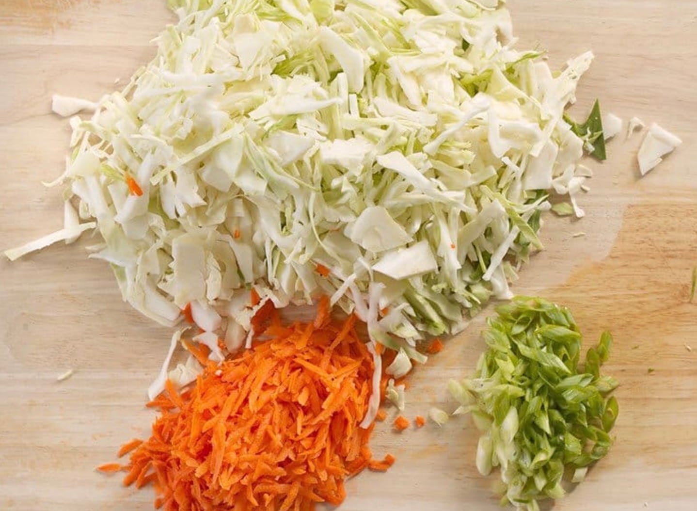 Start by prepping your veggies. Shred the cabbage, grate the carrots, and slice the green onions. Mince the garlic and grate the ginger. These steps make the cooking process smoother.