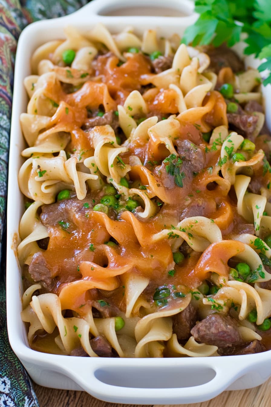 Add extra veggies like diced bell peppers or mushrooms for more nutrition. Mix in a cup of frozen peas or corn when combining the noodles and beef. For a creamier casserole, stir in 1/2 cup of sour cream before baking.
