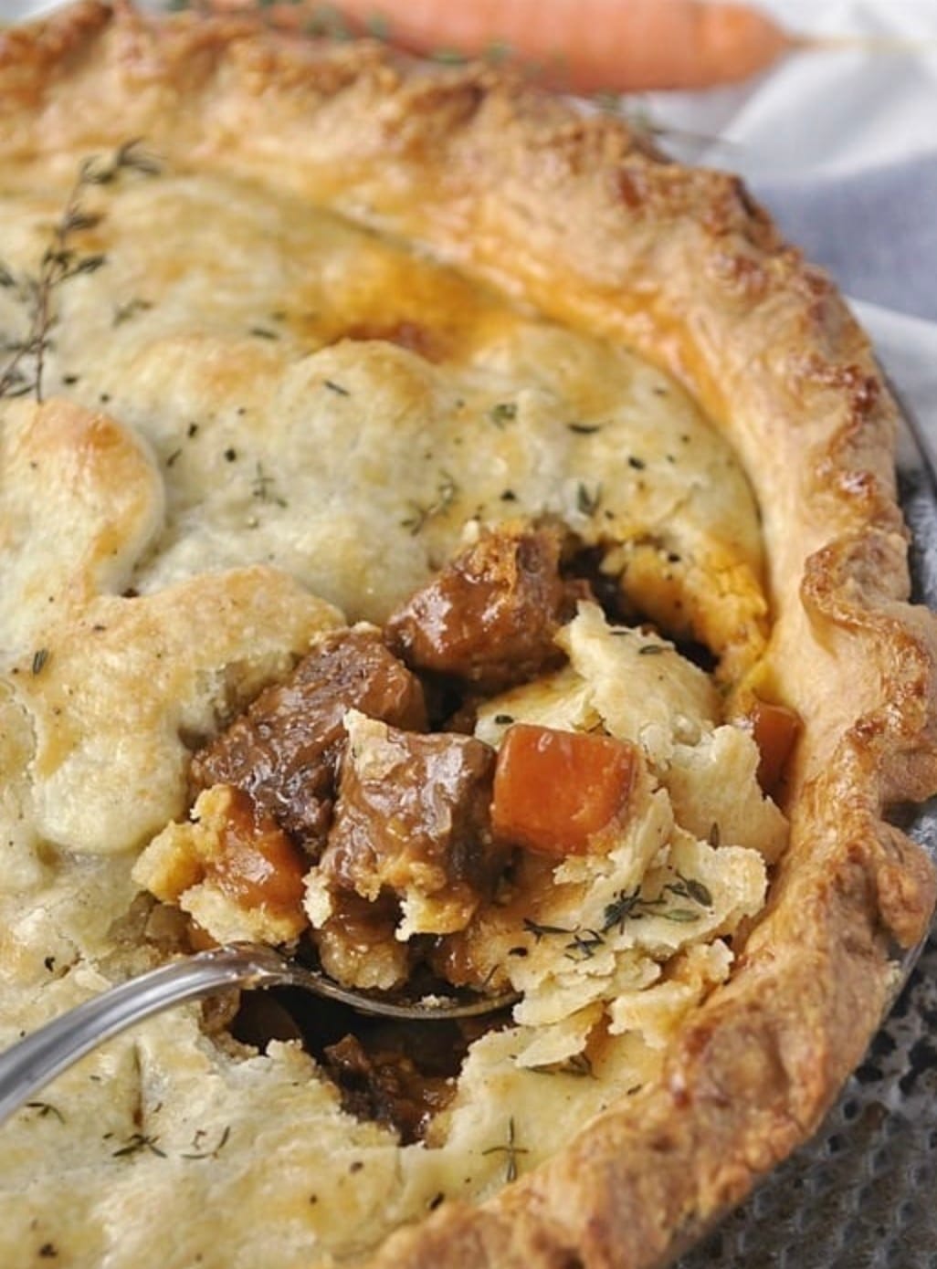 - Guinness Beef Pot Pie: Add a bottle of Guinness stout to the filling for rich flavor