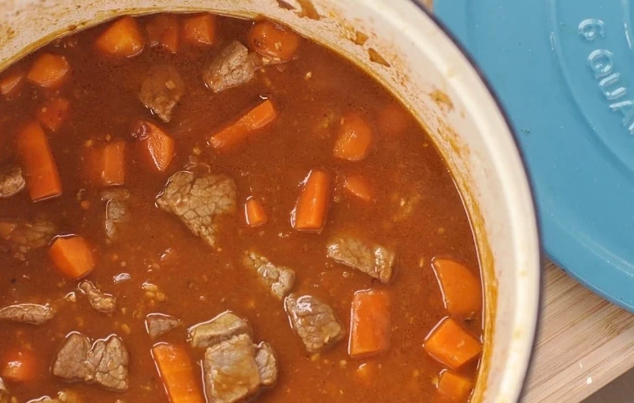 Preheat your oven to 350°F. Pat the beef dry and season it with salt and pepper. Heat 1 1/2 tablespoons of oil in a Dutch oven over medium-high heat. Cook half the beef until browned, about 7-10 minutes. Transfer to a bowl and repeat with the rest.