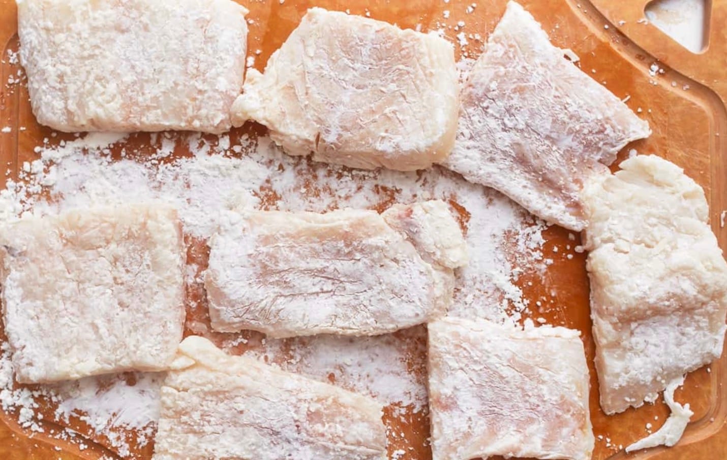 Season the Fish: Pat 1 pound of white fish fillets dry with paper towels. Season all fish pieces with salt on both sides, then dredge them in 2 tablespoons of cornstarch until they are fully covered. Set aside.