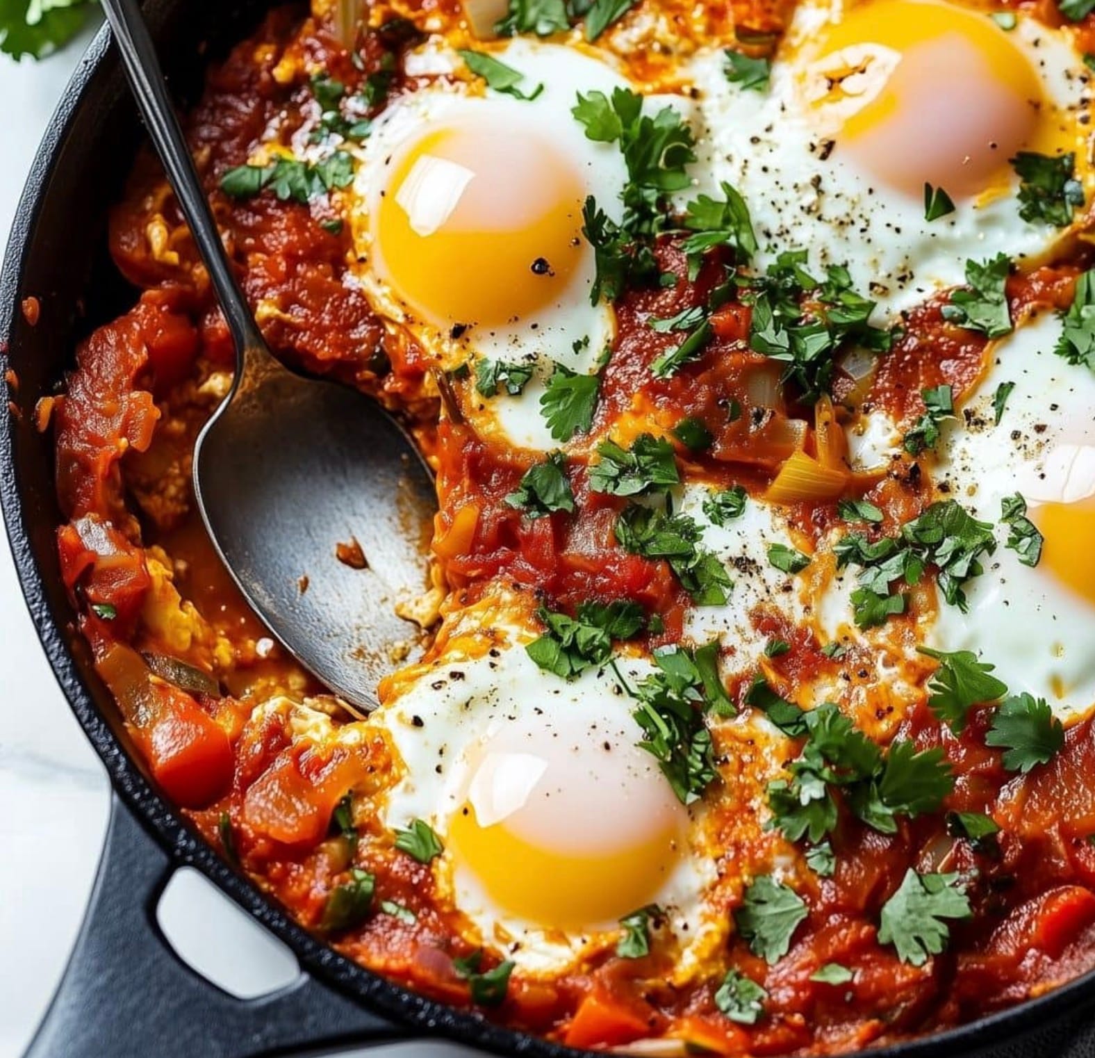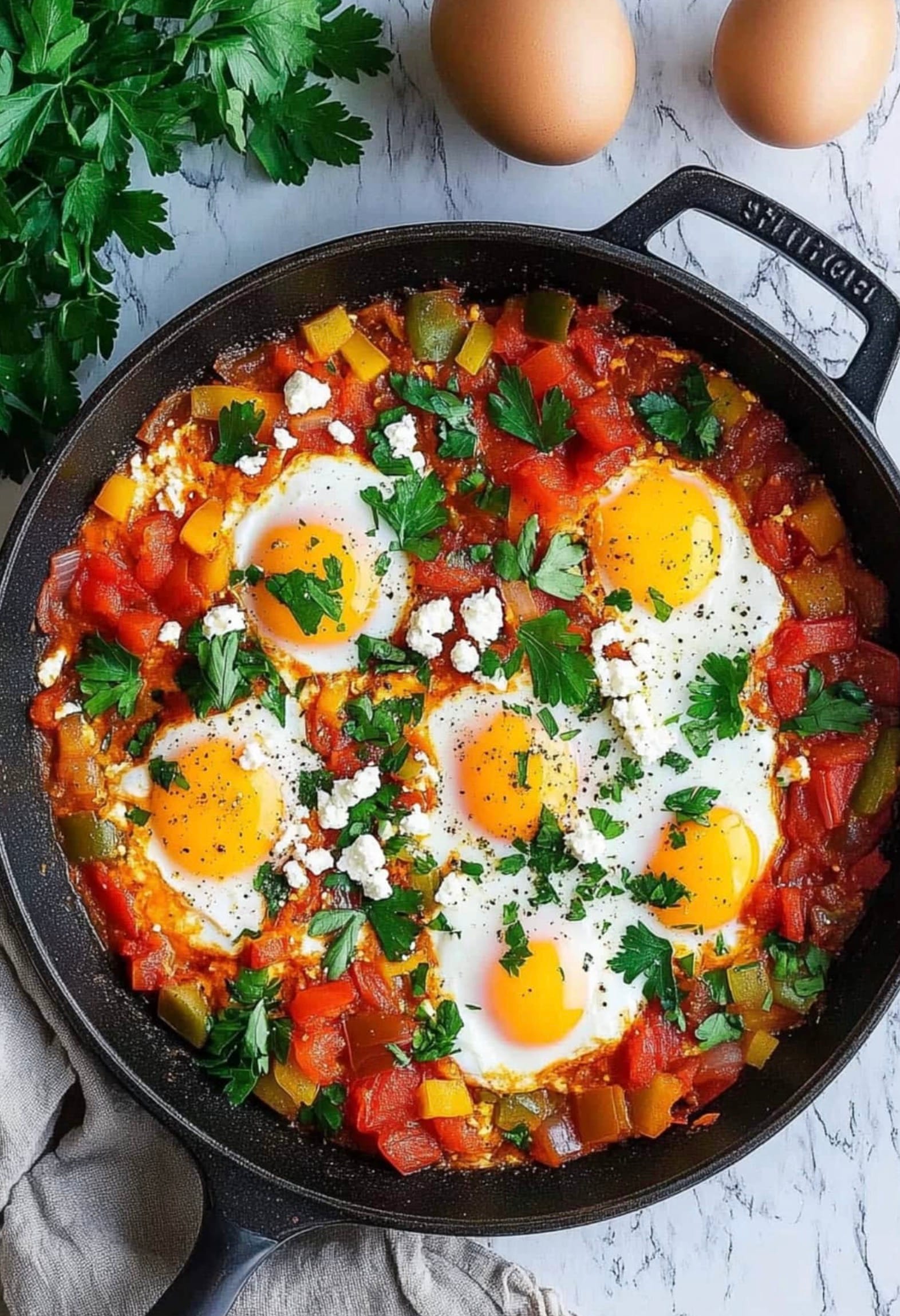 This recipe serves 6 people and has only 210 calories per serving. You’ll love the mix of flavors from the fresh veggies, spices, and soft eggs. The crusty bread on the side is great for soaking up the sauce. It’s a filling meal that will keep you full and happy.