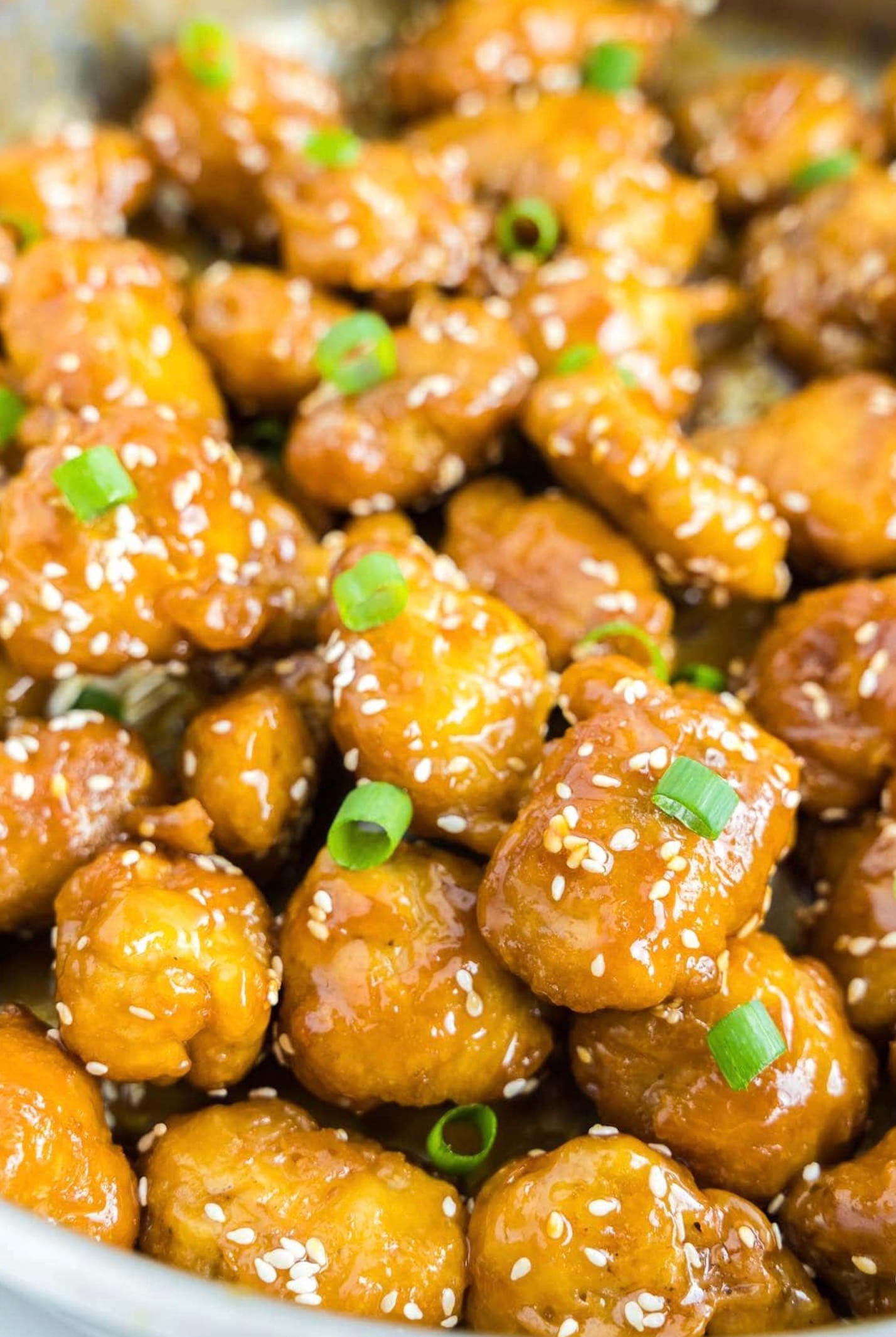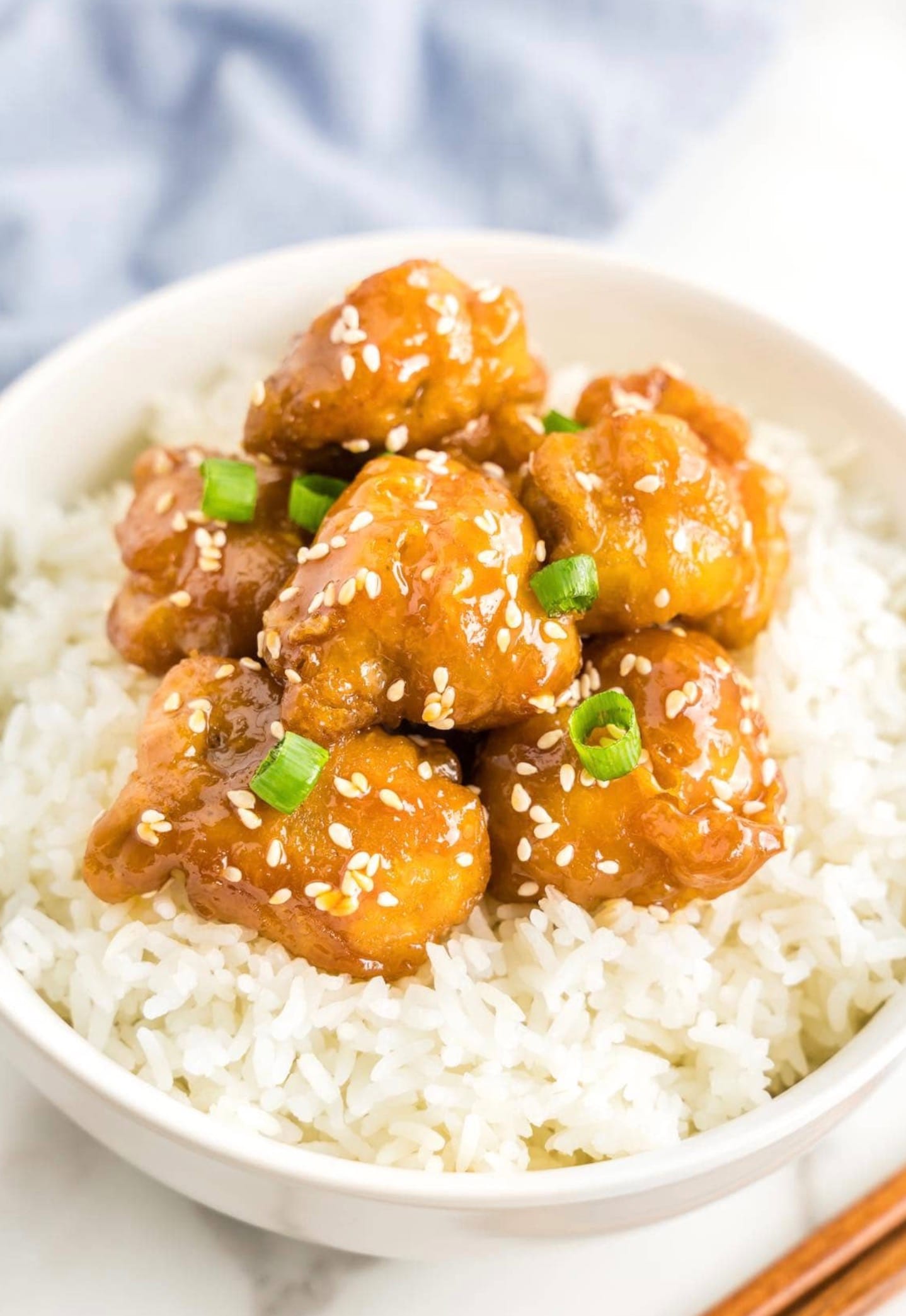 You’ll learn how to make the perfect batter and sauce from scratch. The chicken turns out golden and crunchy on the outside, yet tender inside. Top it with sesame seeds and green onions for extra flavor and crunch. Your family will ask for this yummy meal again and again!