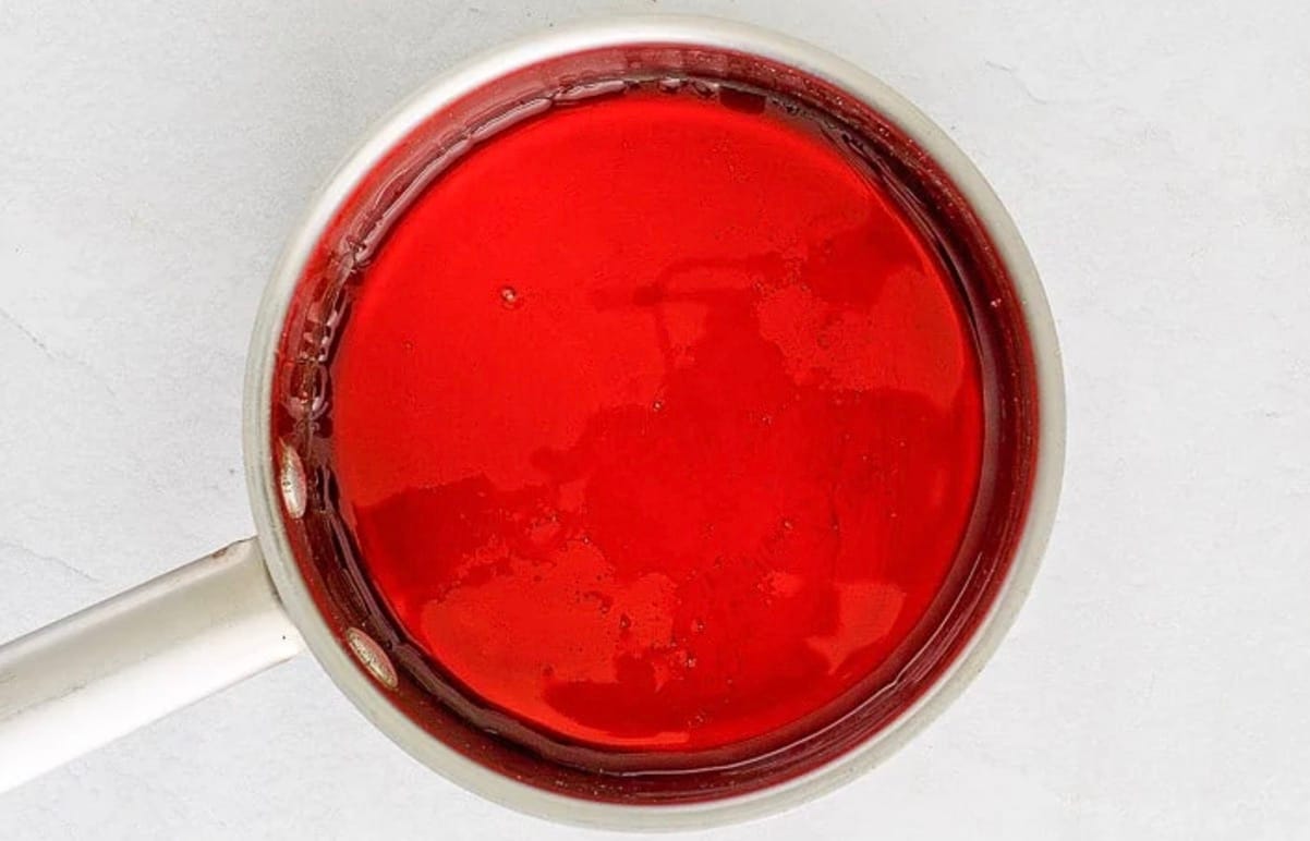 While the crust bakes, make the filling. Mix water, sugar, salt, cornstarch, and food coloring in a saucepan. Cook this mixture for about 5 minutes, stirring often. Set it aside to cool.