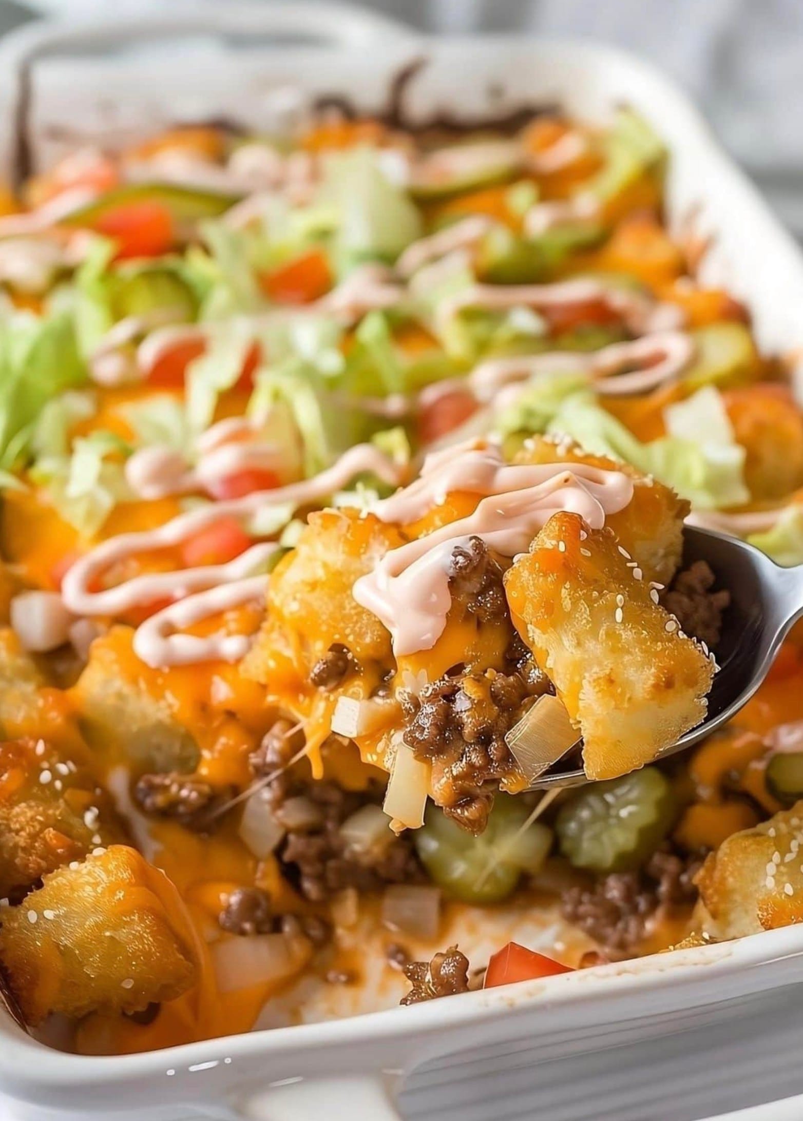 Are you craving the taste of a Big Mac but want a comfy home-cooked meal? This Big Mac Casserole is perfect for you! It combines all the yummy flavors of your favorite burger in an easy-to-make dish that serves 6 people. You’ll get the beef, pickles, cheese, and that special sauce, all topped with crispy tater tots.