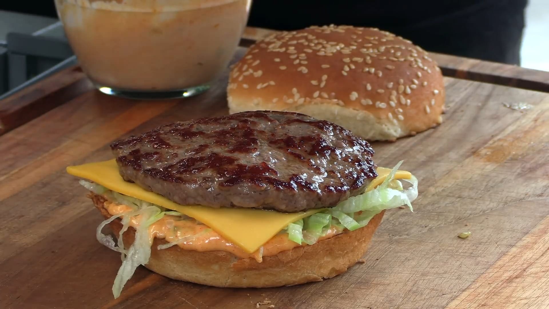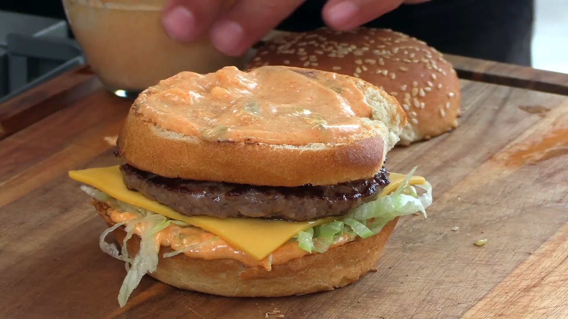 Spread Big Mac sauce on the bottom bun.