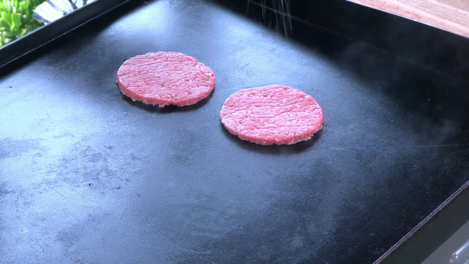 Season one side of each beef patty with kosher salt.
