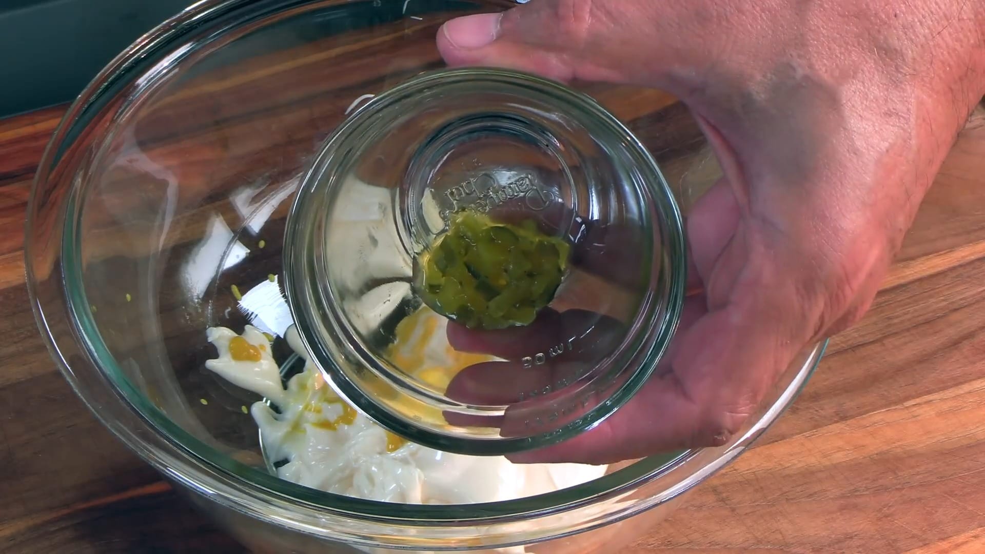 Add sweet pickle relish to the bowl.