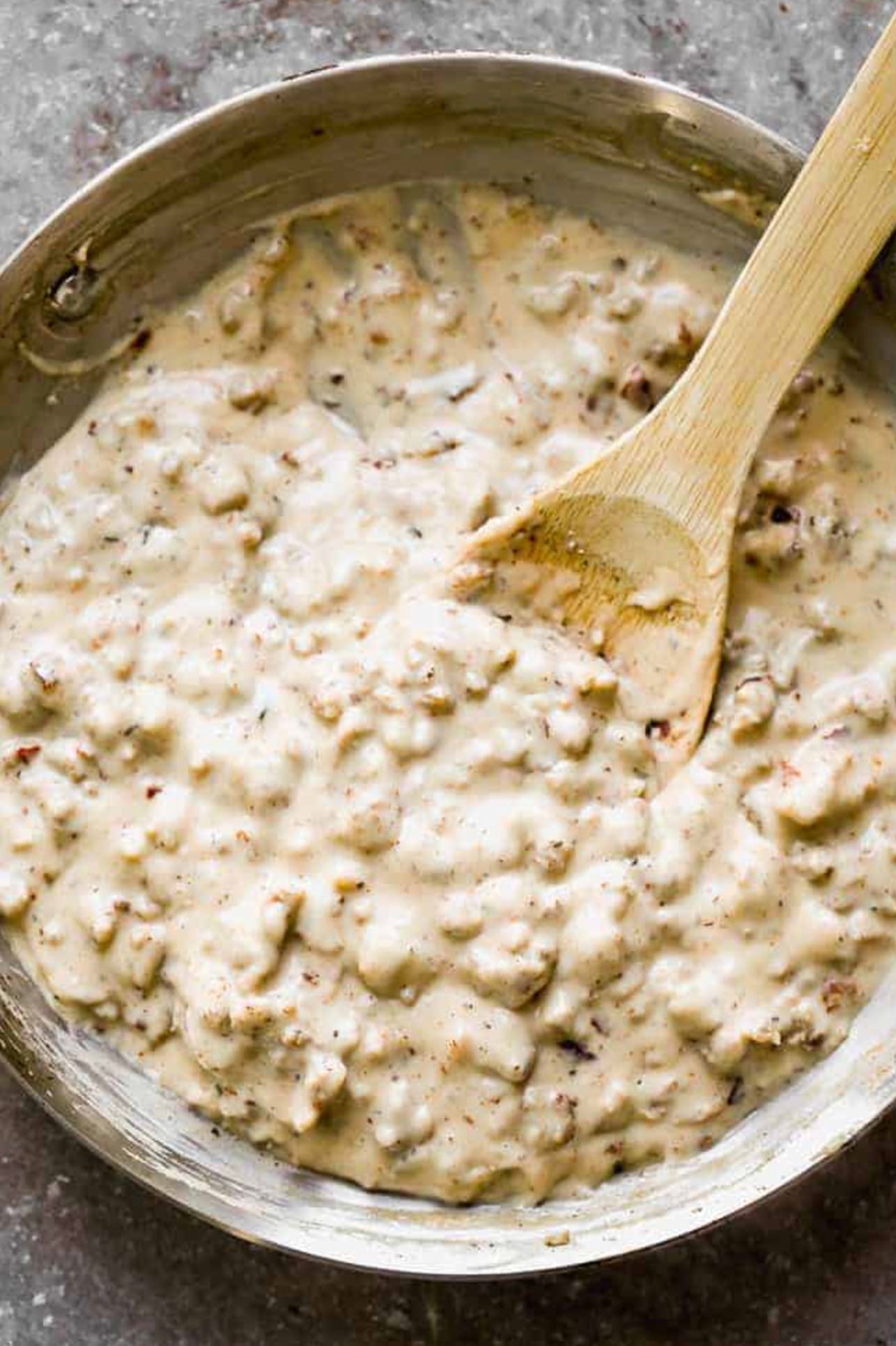 For a lighter version, use turkey sausage and low-fat milk. You can also make vegetarian gravy using mushrooms instead of sausage.