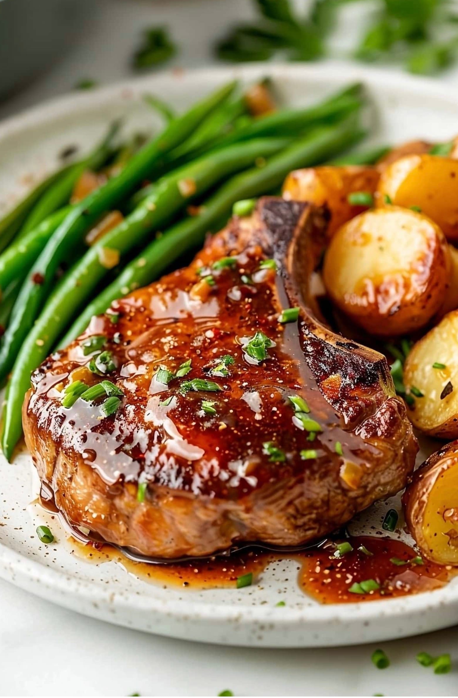 Take the pan out and let the pork chops rest for 5 minutes. This keeps them juicy. Pour any leftover sauce on top before you dig in. Enjoy your sweet and savory meal!