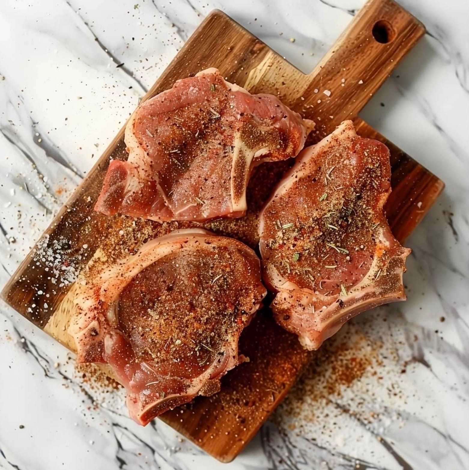 Preheat your oven to 400°F. Pat the pork chops dry and rub them with olive oil. This helps the spices stick better.