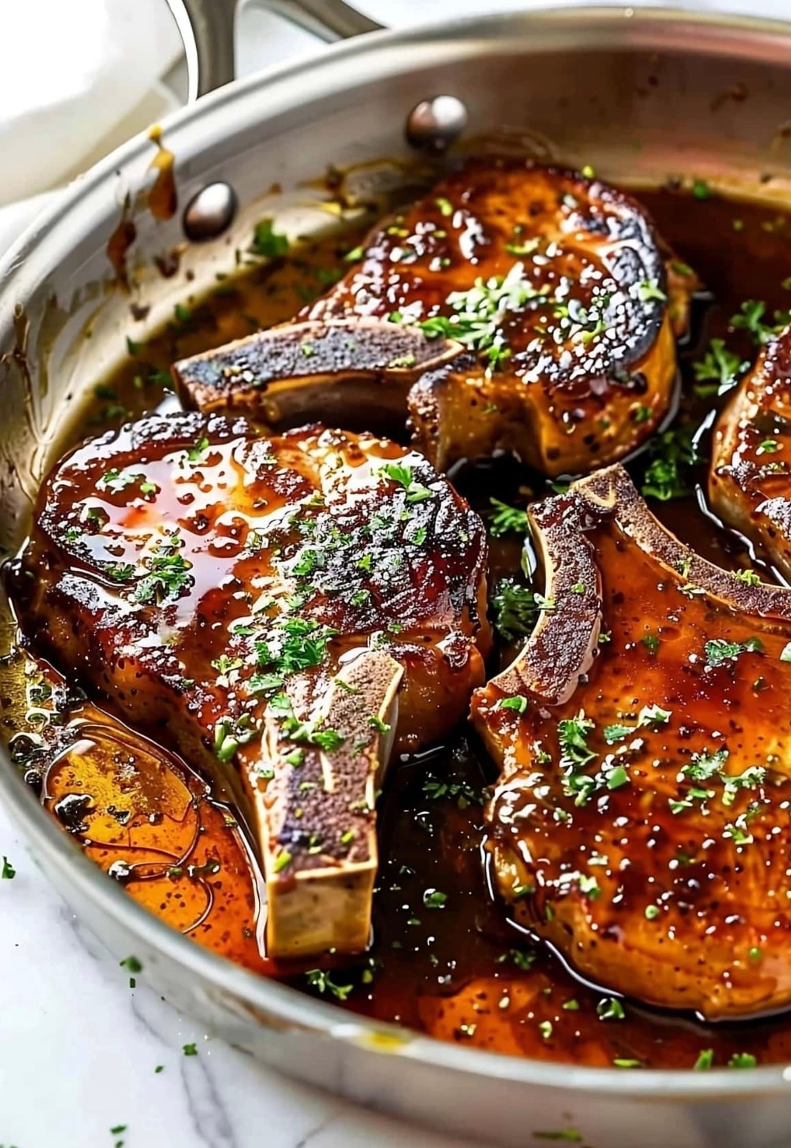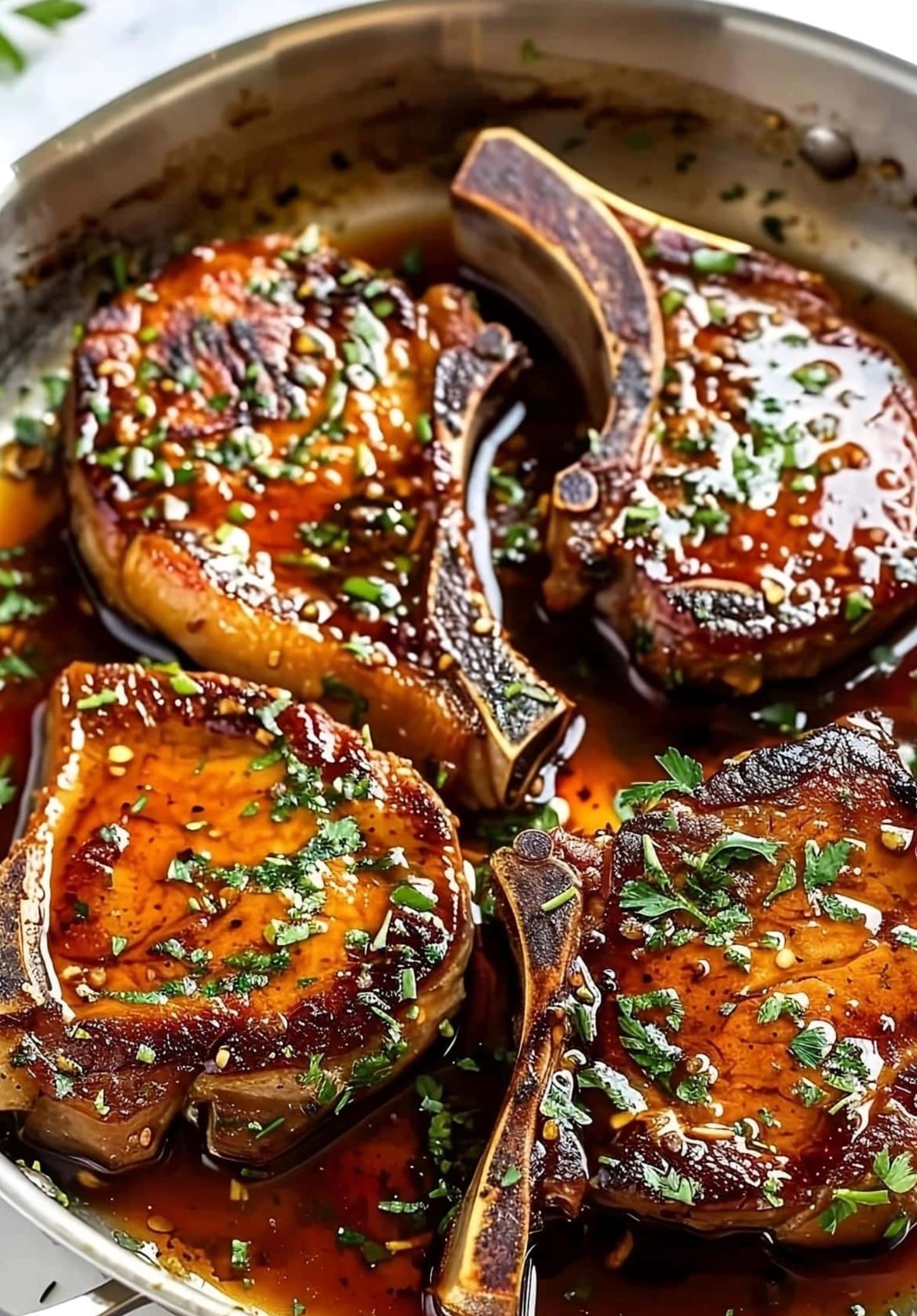 The recipe is simple to follow. You’ll coat the pork chops in a mix of brown sugar and spices, then sear them in a skillet. After that, you’ll make a buttery garlic sauce and finish cooking the chops in the oven. The result is tender, flavorful pork chops that your whole family will love.