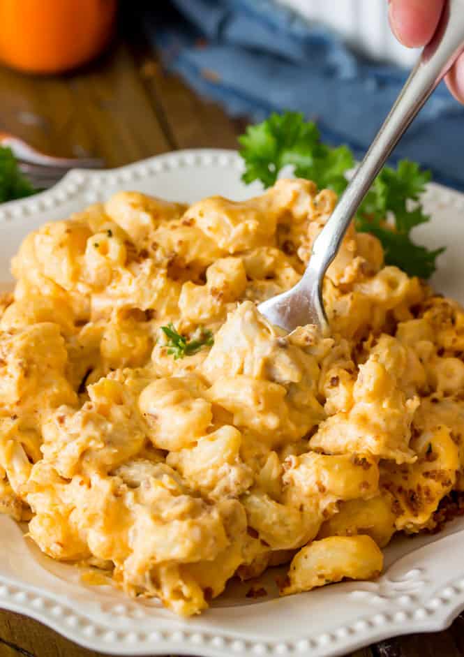Ashley, this one’s for you! Your dedication to your husband’s office potlucks warms my heart. I know those untouched dishes can be tough, but you’re about to become the talk of the office. This Buffalo Chicken Mac and Cheese recipe was made just for you.