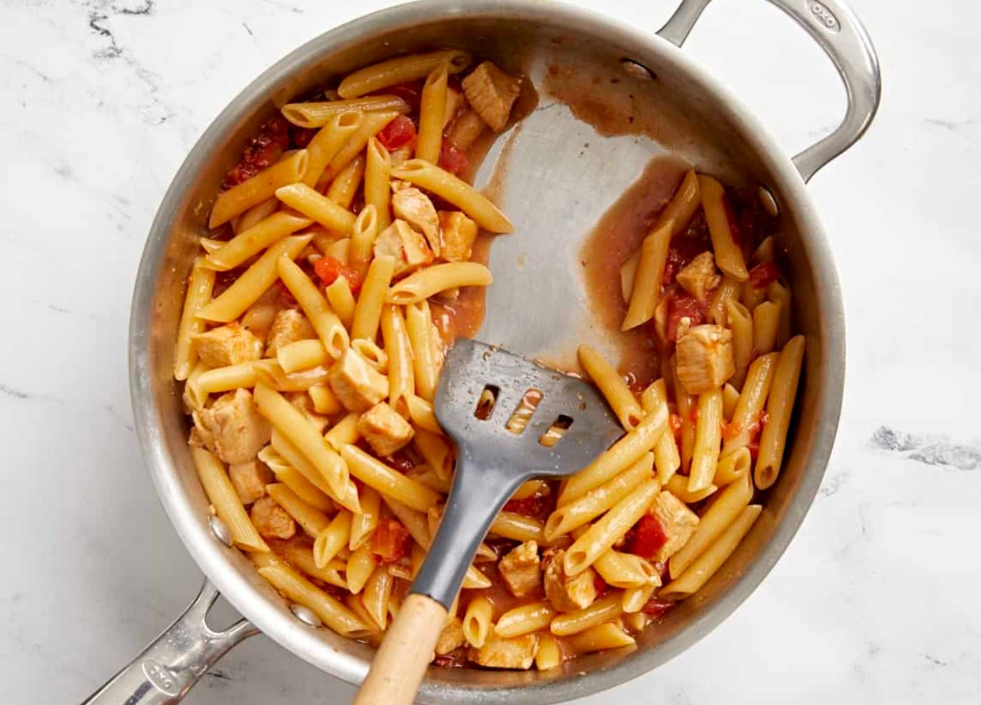 Pasta: Try rotini, fusilli, or bow-tie pasta instead of penne. These shapes hold the sauce well too.