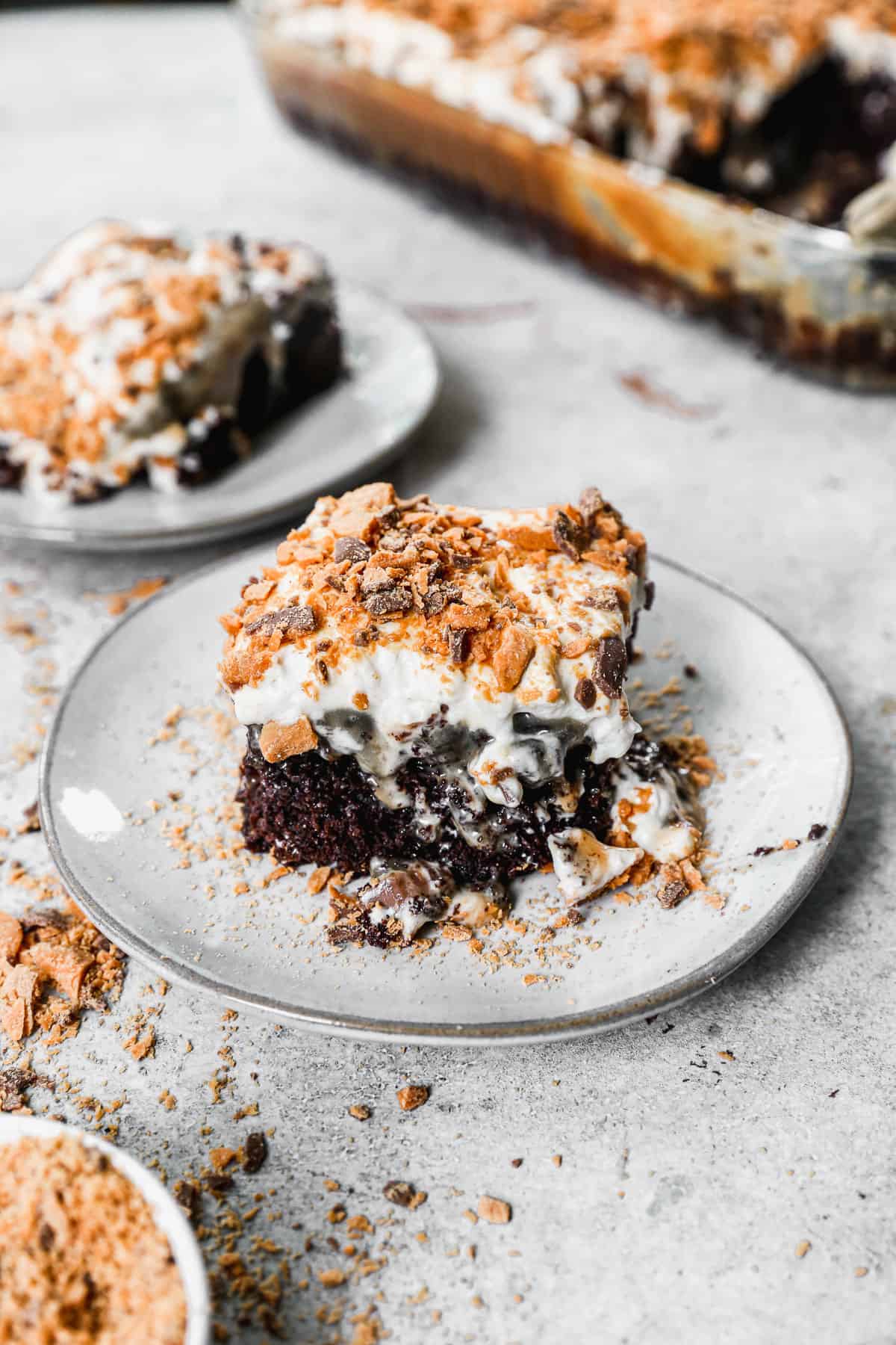 Just follow these baking method and dessert preparation steps. Then, you’ll have a yummy Easy Butterfinger Poke Cake to share. Enjoy!