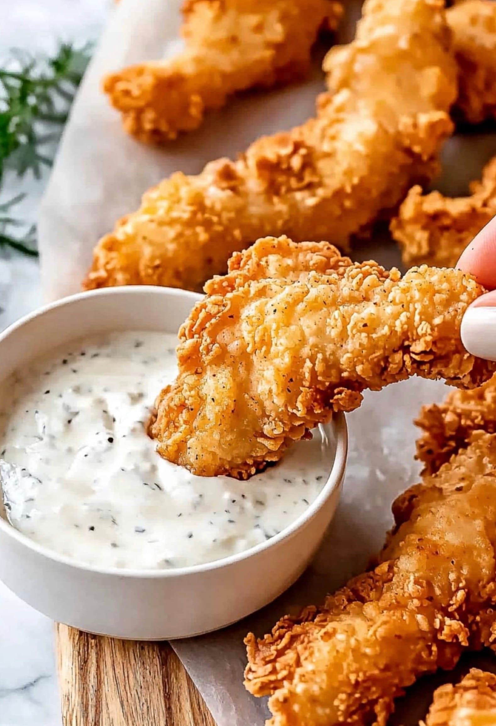 Serve your crispy tenders hot with your favorite dips. Enjoy your tasty meal!