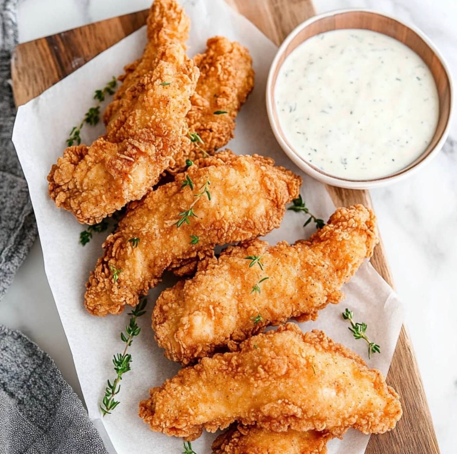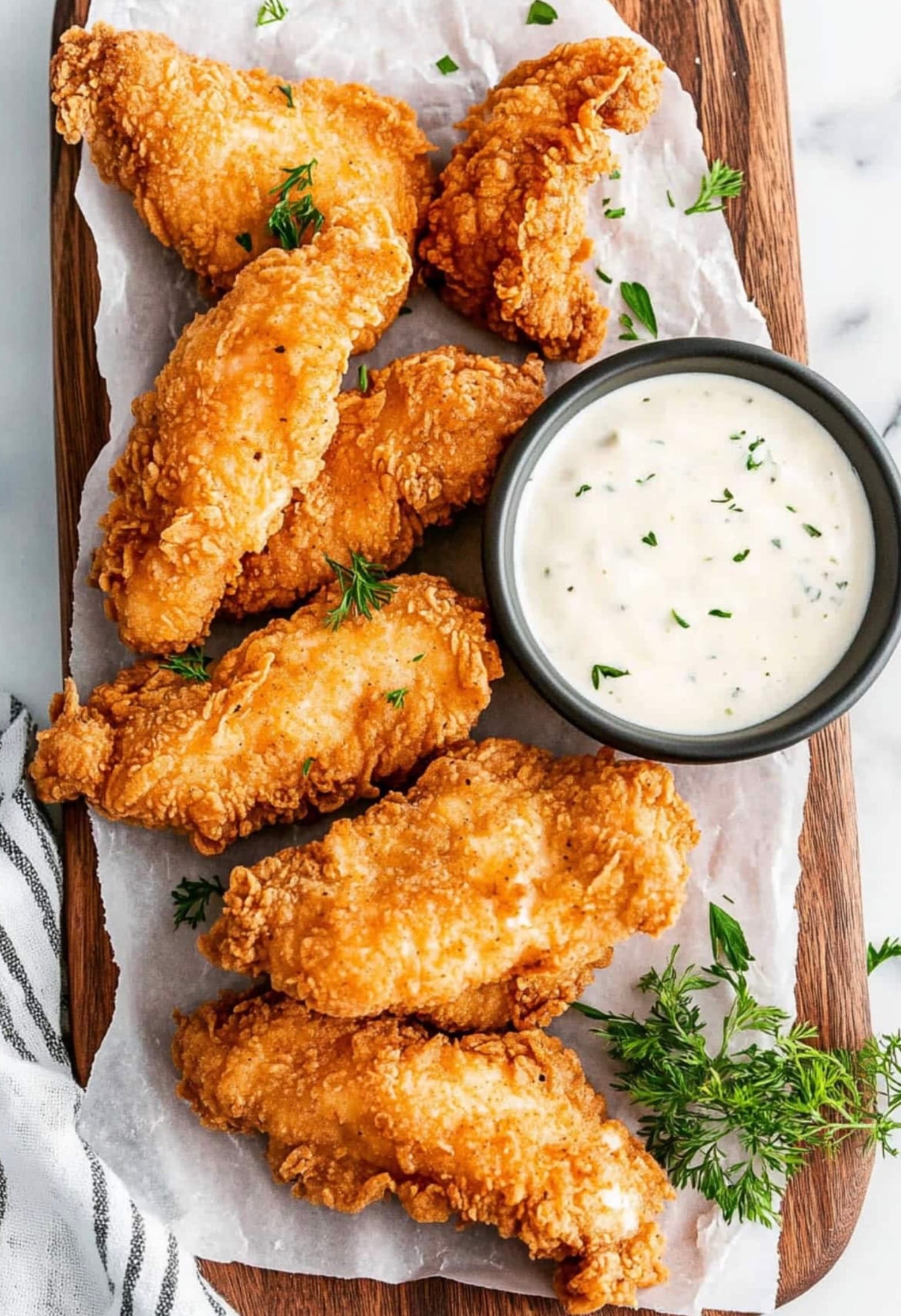 The secret to these tenders is the buttermilk marinade. It keeps the chicken super moist and adds a tangy flavor that pairs perfectly with the crispy coating. You can even spice things up by adding some hot sauce to the mix. Don’t forget to let the chicken rest in the coating before frying – this helps create that extra-crispy exterior you’re after.