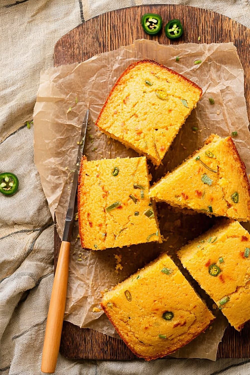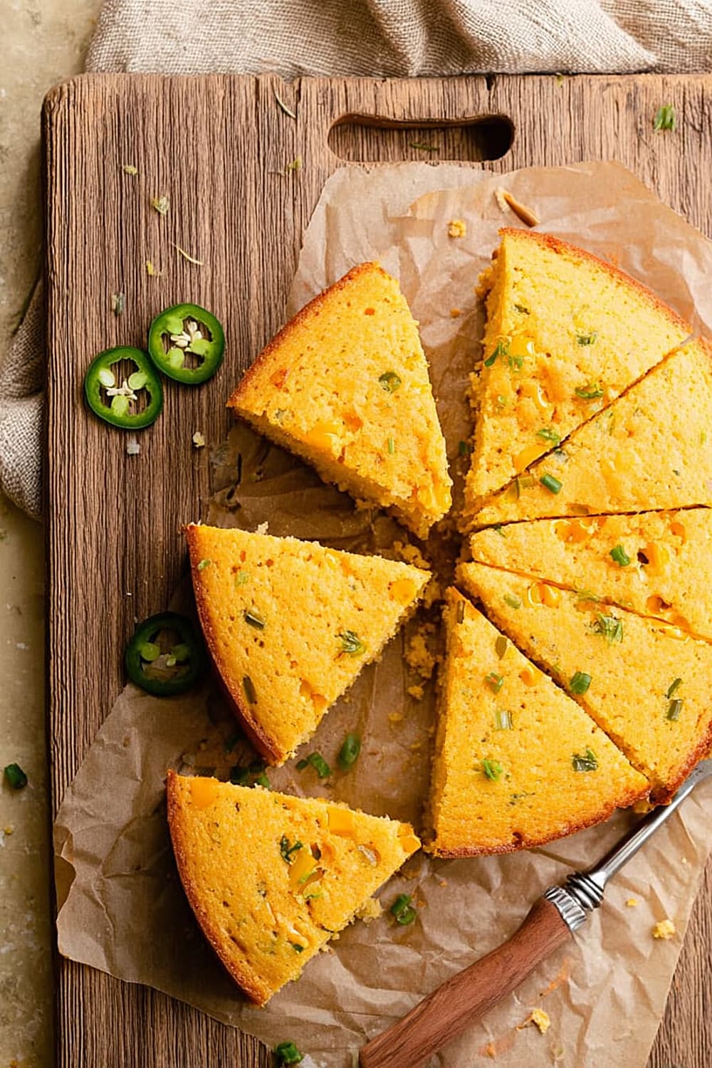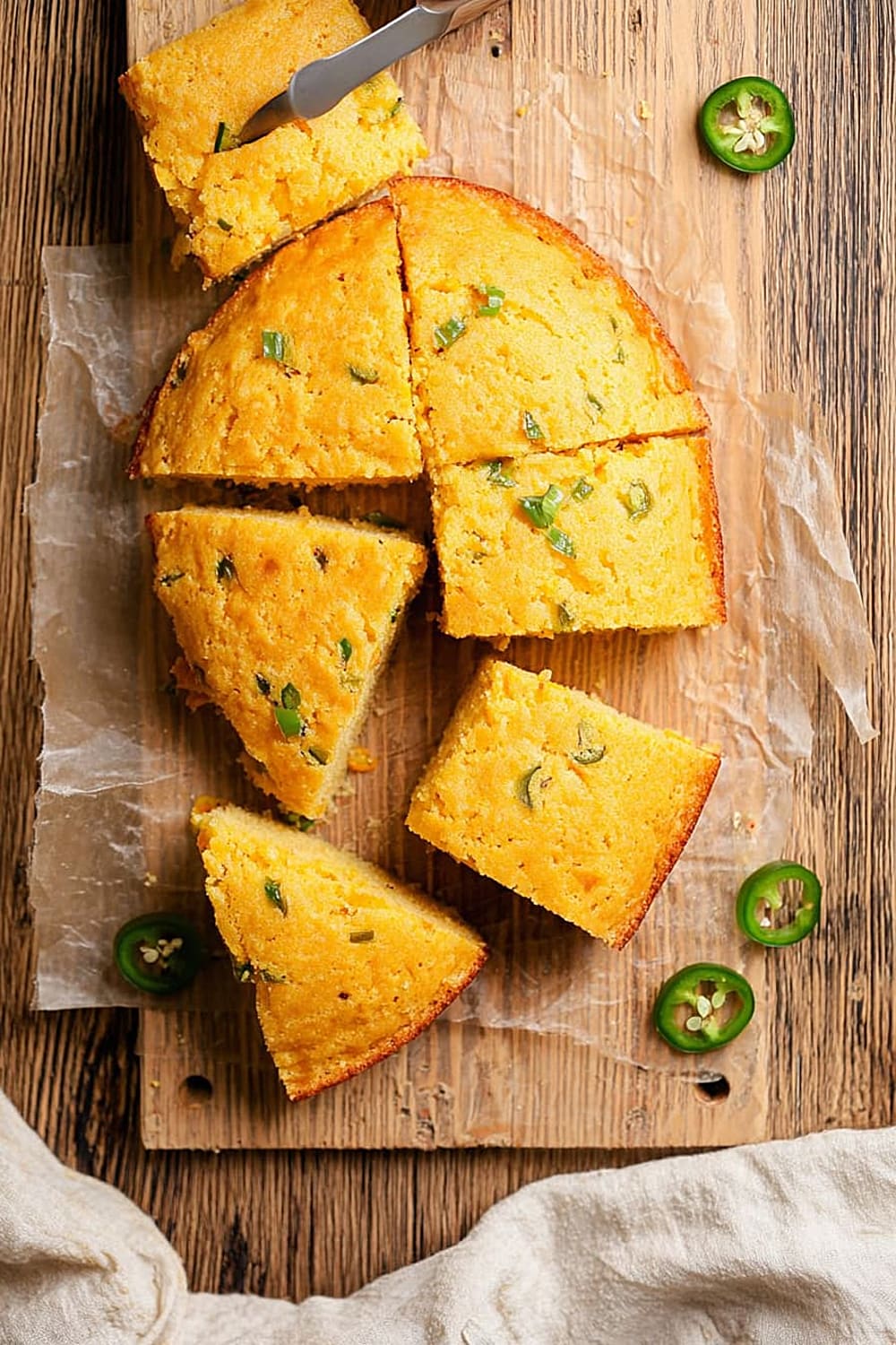 This cornbread shines alongside slow-cooked chili, barbecue pulled pork, or smoked brisket where its slight sweetness balances smoky, savory meats. Collard greens with bacon provide the perfect bitter contrast to the cornbread’s richness, while black-eyed peas or pinto beans create a complete protein combination. Coleslaw adds refreshing crunch and acidity that cuts through the cornbread’s richness, and grilled vegetables like zucchini or bell peppers complement the jalapeño flavors.