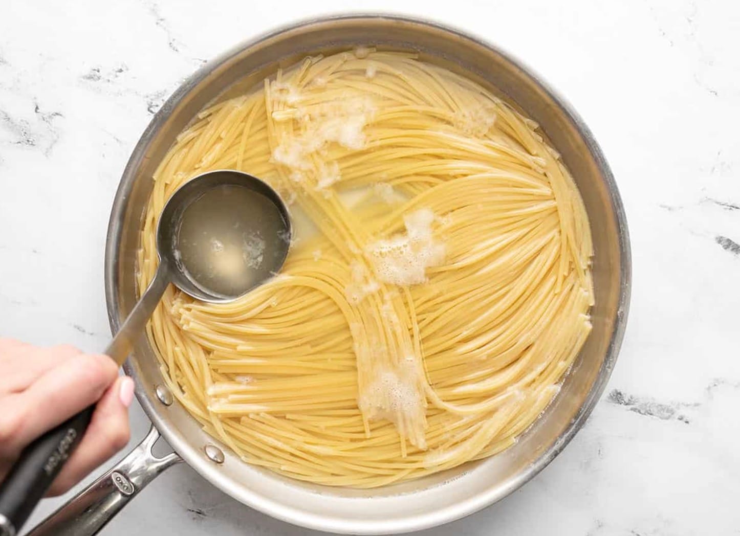 You’ll also want to keep about 1 cup of pasta water handy. This starchy water helps create the creamy sauce.