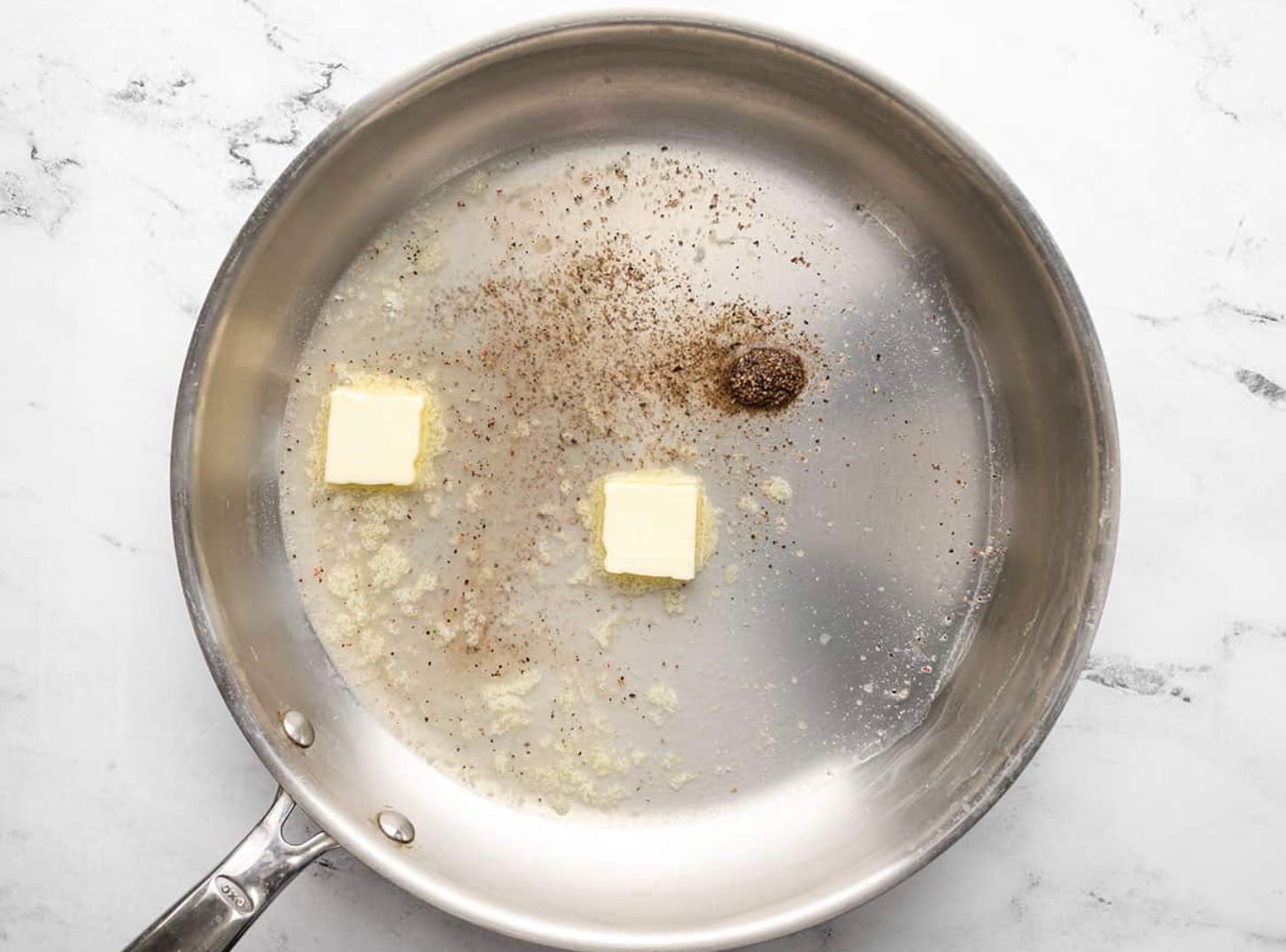 Melt 2 tablespoons of butter with 1 teaspoon of black pepper in the same pan. Cook until you can smell the pepper.