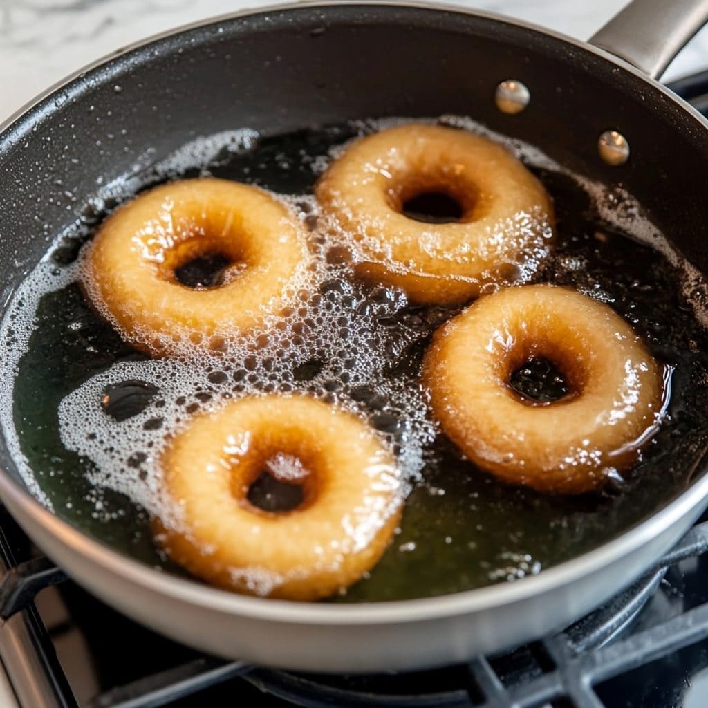 Don’t overcrowd the pan when frying. This keeps the oil temperature steady and gives your donuts room to float freely.