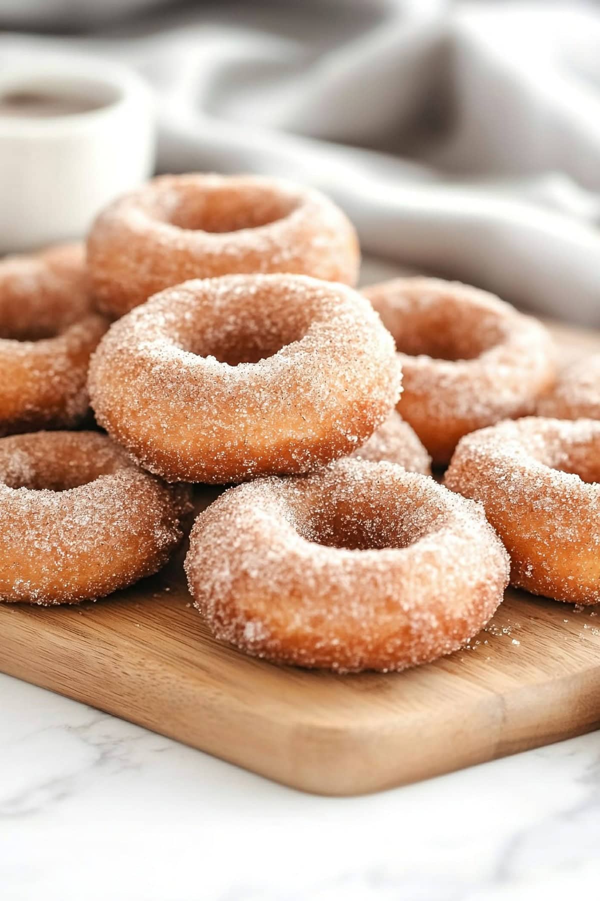 For the coating, you’ll mix the sugar and cinnamon together. This sweet and spicy blend gives the donuts their classic flavor.