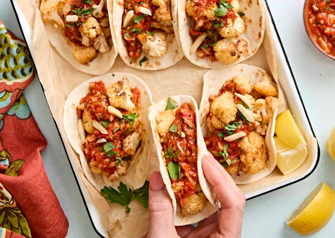 Cauliflower Tacos with Romesco Sauce
