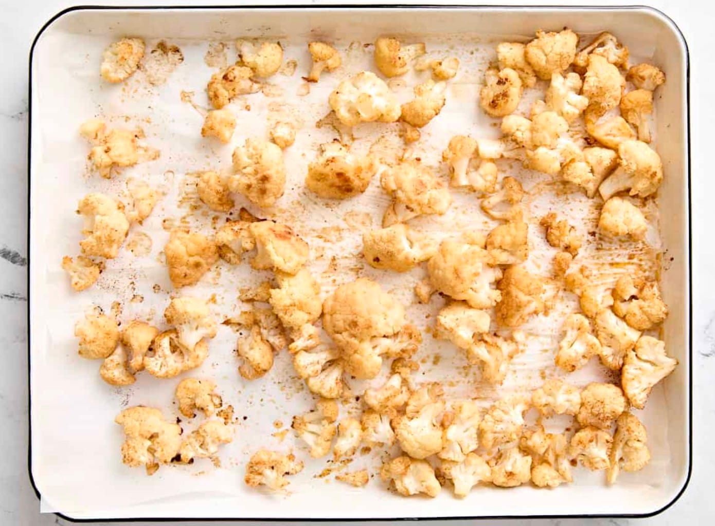 Got leftovers? Store the cauliflower and sauce separately in the fridge. They’ll keep for 3-4 days. Reheat the cauliflower in the oven to keep it crispy.
