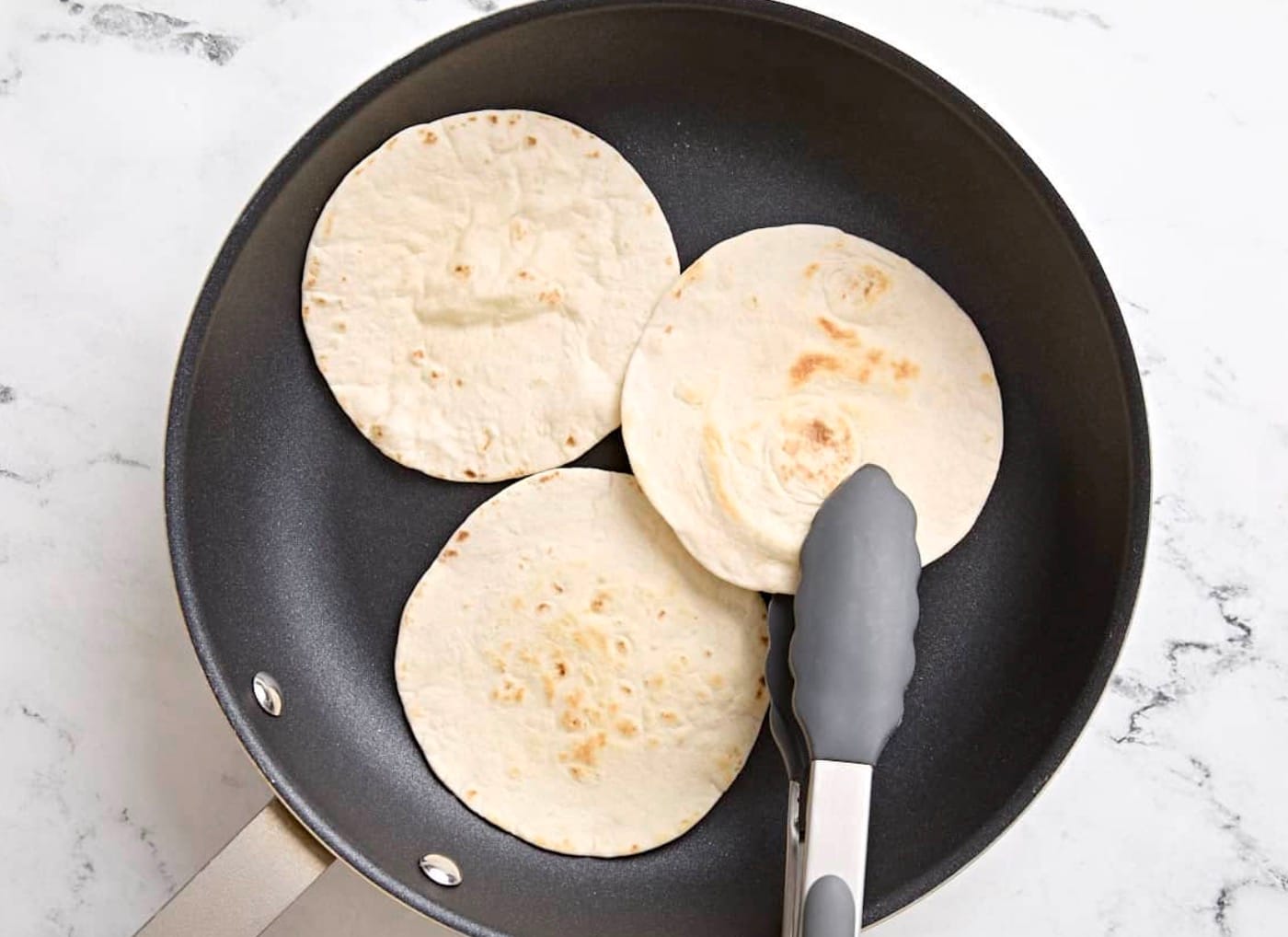 Warm your tortillas in a dry pan until they’re lightly toasted.
