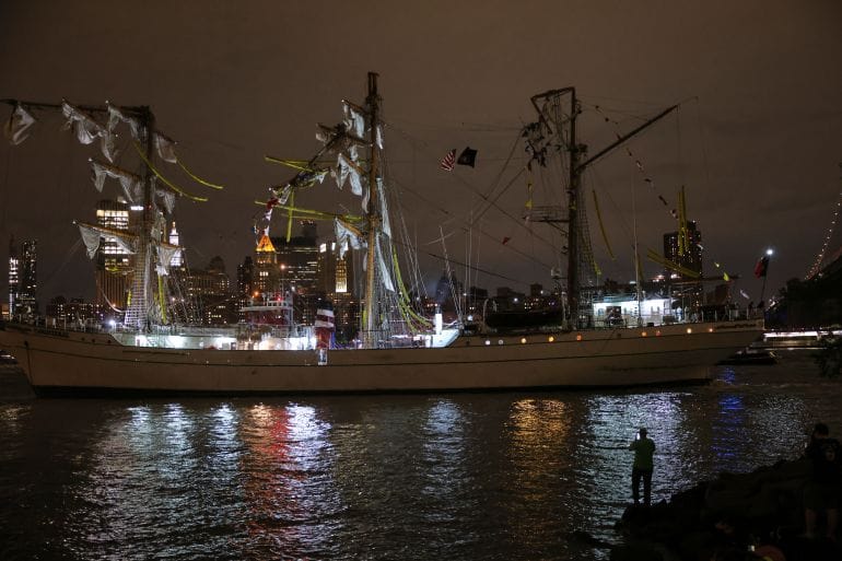 Late Saturday night, the majestic Mexican Navy training ship, Cuauhtémoc, was navigating the East River.