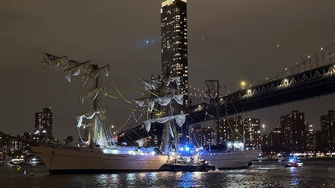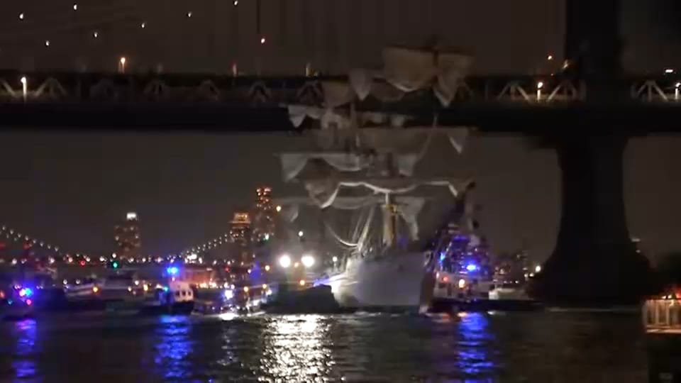 Chaos As Massive Mexican Sailing Ship Crashes Into Brooklyn Bridge Killing Two