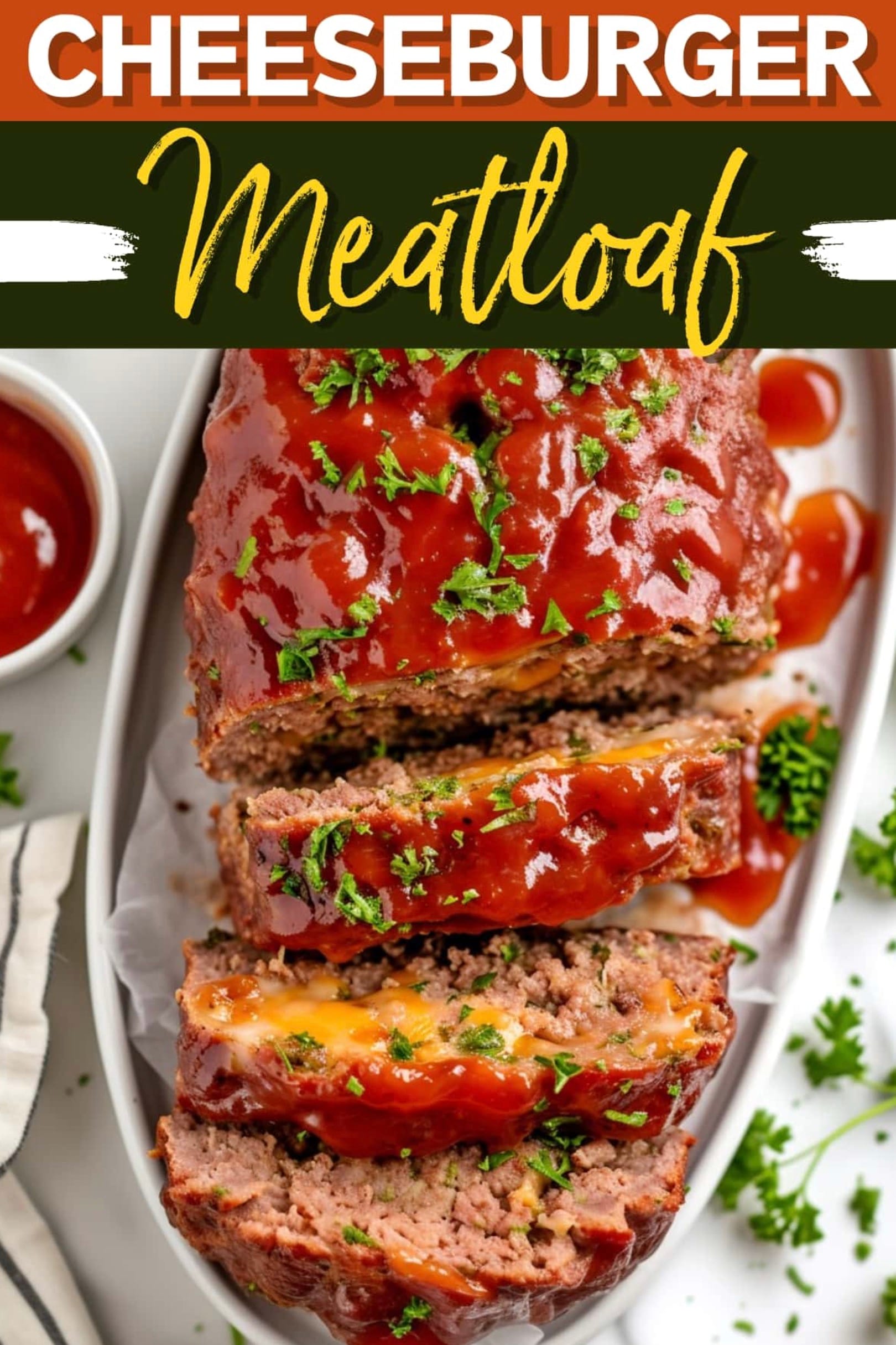 Try serving your cheeseburger meatloaf with classic burger toppings like lettuce, tomato, and pickles on the side.