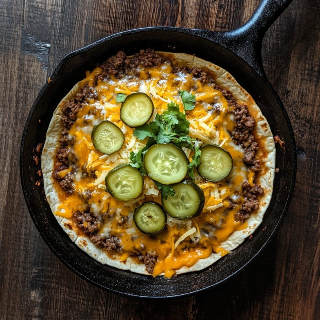 These make up the heart of your cheeseburger quesadillas. The beef gets seasoned with spices for extra flavor. The cheese, onions, and pickles bring that classic burger taste.