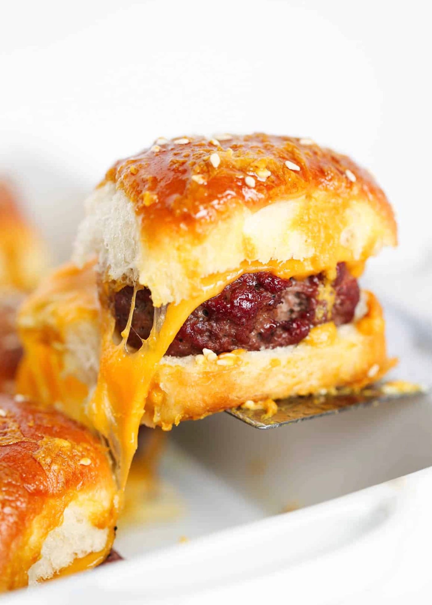 Add your favorite toppings like lettuce, tomatoes, or pickles. Serve hot and enjoy your mini cheeseburgers!