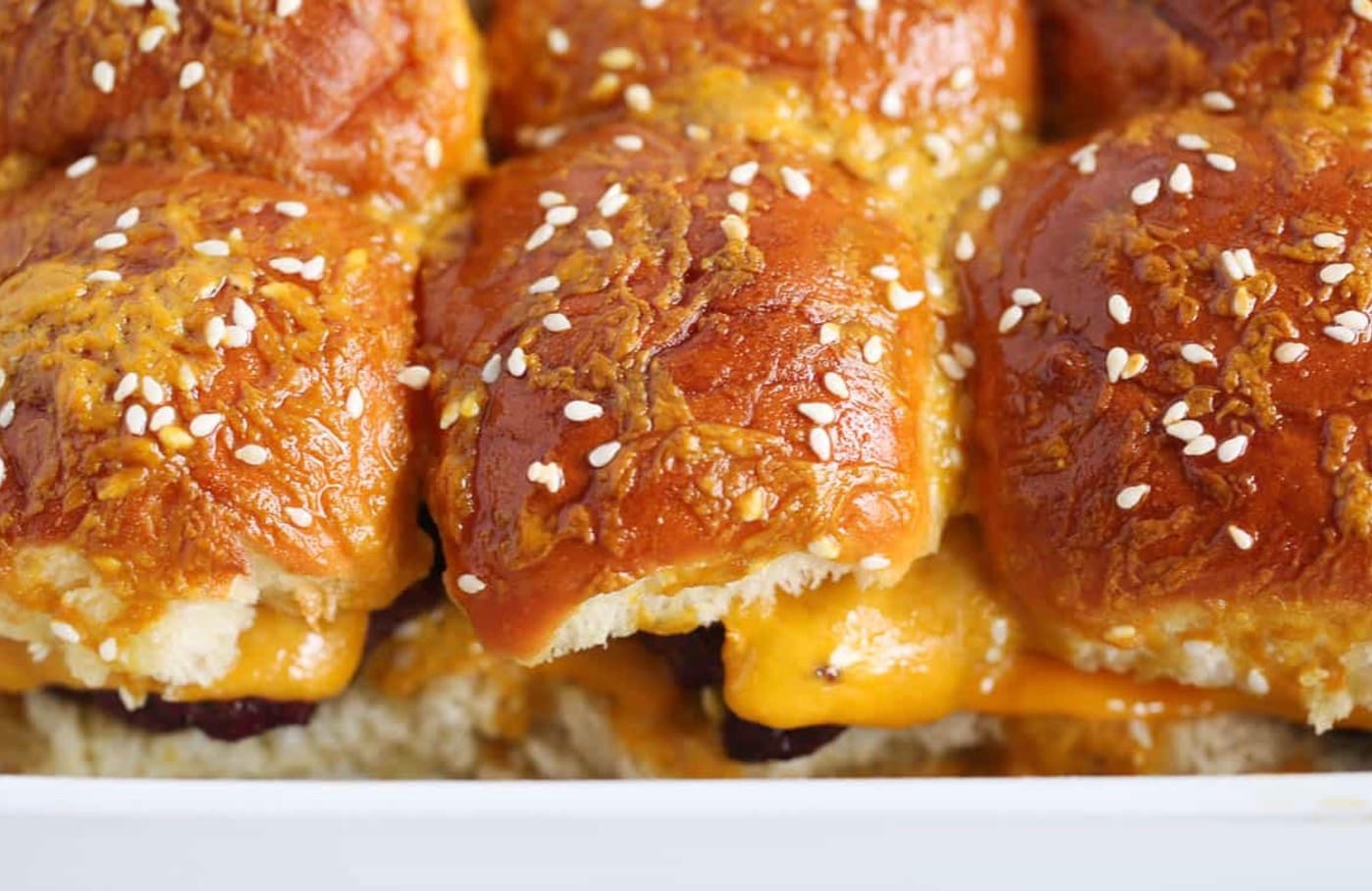 The sliders are made with ground beef, BBQ sauce, and cheese on Hawaiian rolls. They’re topped with a flavorful butter sauce and baked until golden. You can customize them with your favorite toppings like lettuce, tomatoes, and pickles.