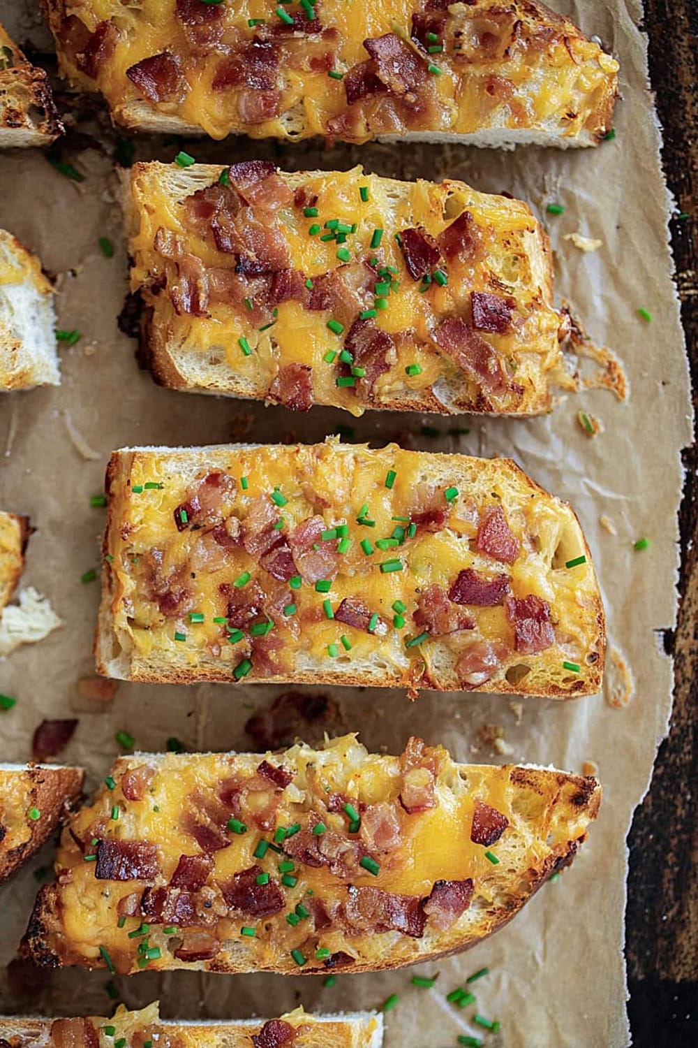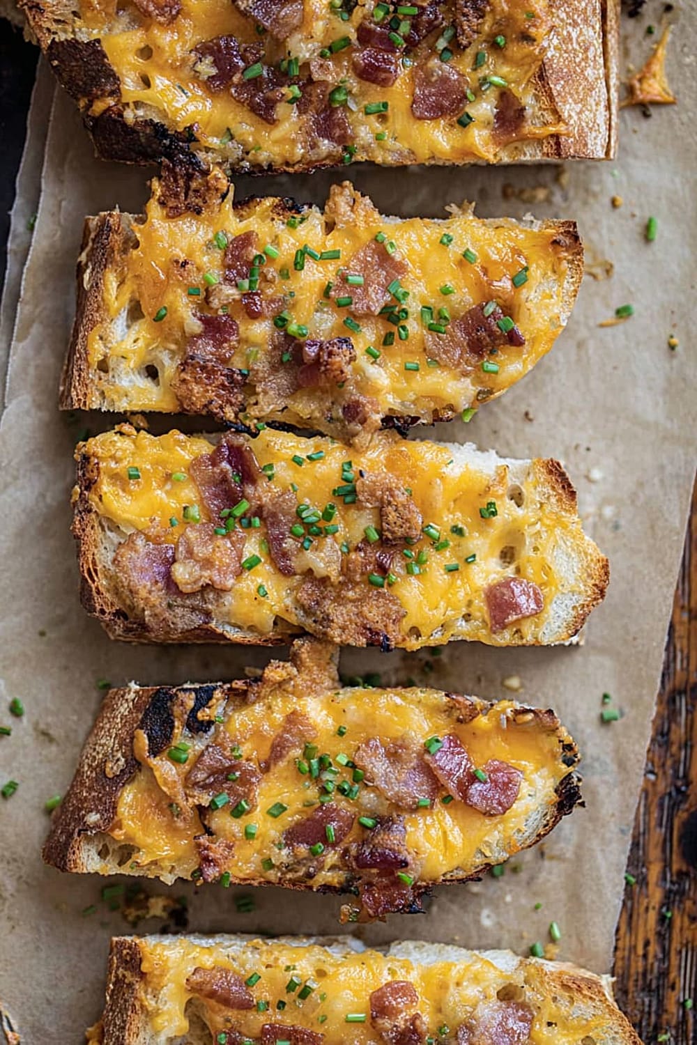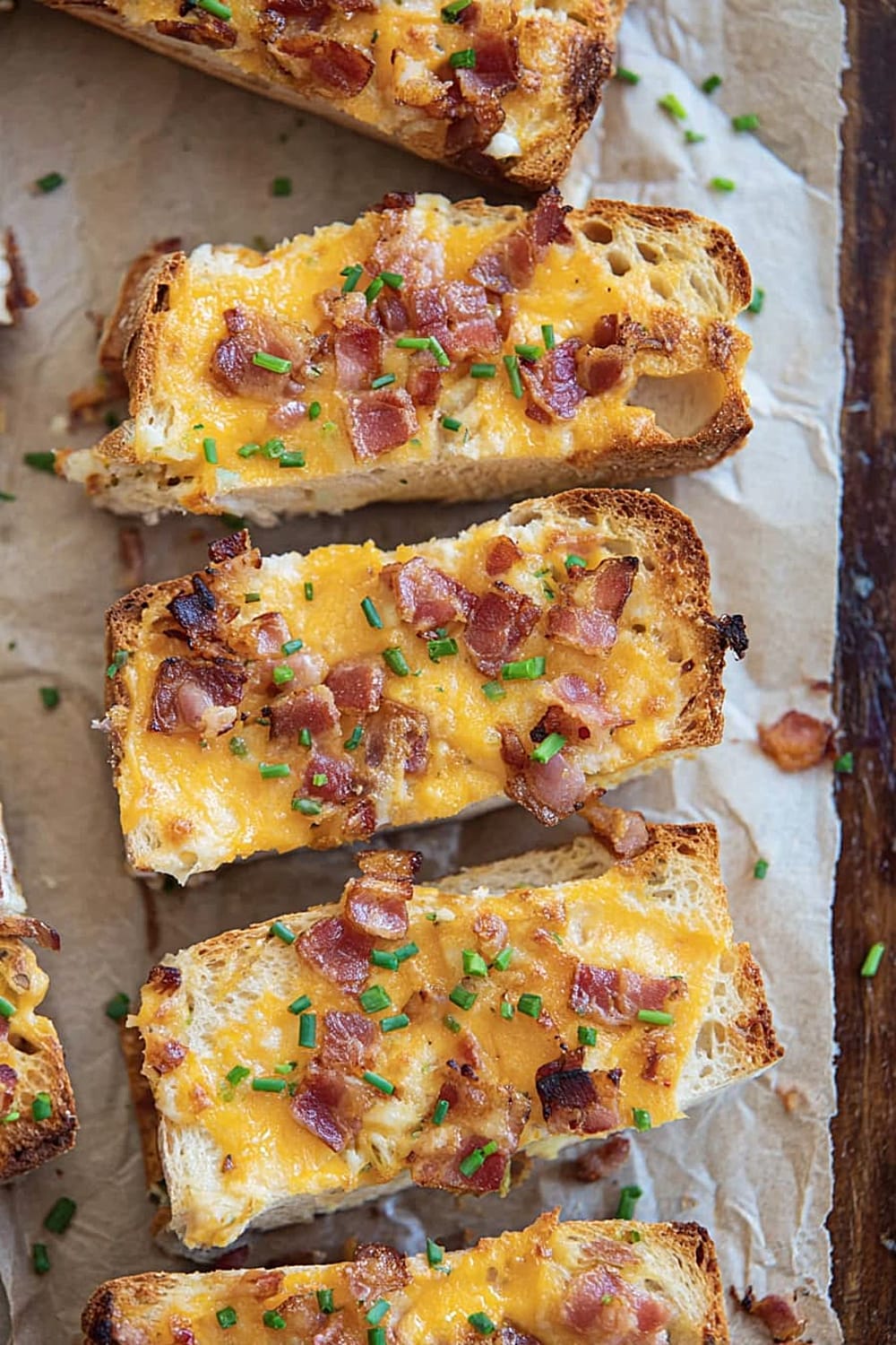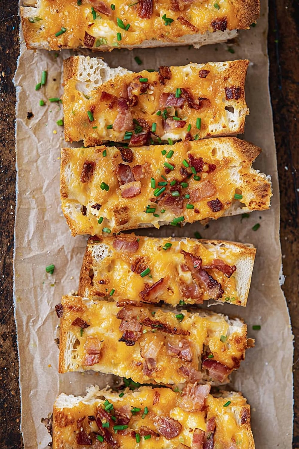 Picture this: crispy French bread topped with a creamy ranch-mayo mixture, loaded with melted cheddar cheese and crispy bacon bits, then baked until golden and bubbly.