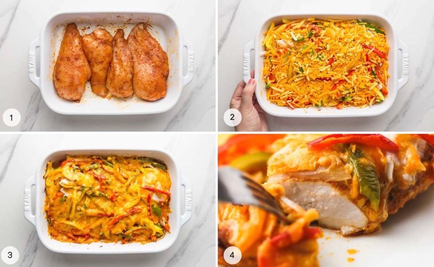 With juicy chicken, colorful bell peppers, and gooey melted cheese, this casserole is sure to be a hit. The best part? It only uses one dish, so cleanup is a breeze. Get ready to add this recipe to your regular dinner rotation!