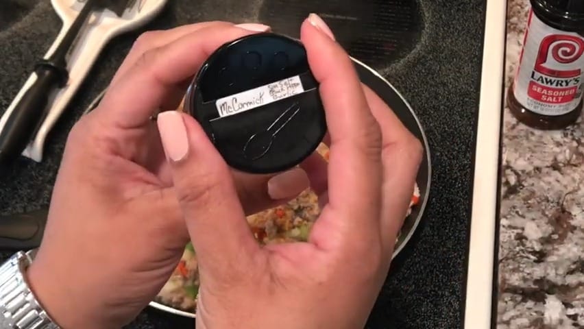 Add Lowry’s Seasoning Salt to the meat mixture.