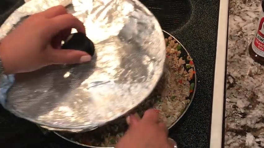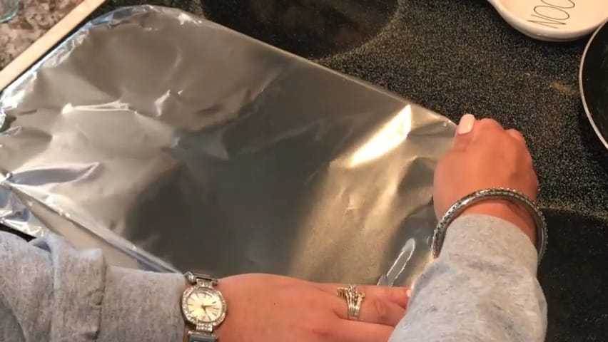 Cover the baking dish with aluminum foil.