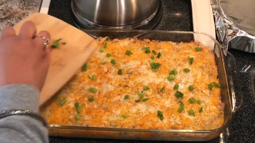 Remove the casserole from the oven and top with chopped green onions.
