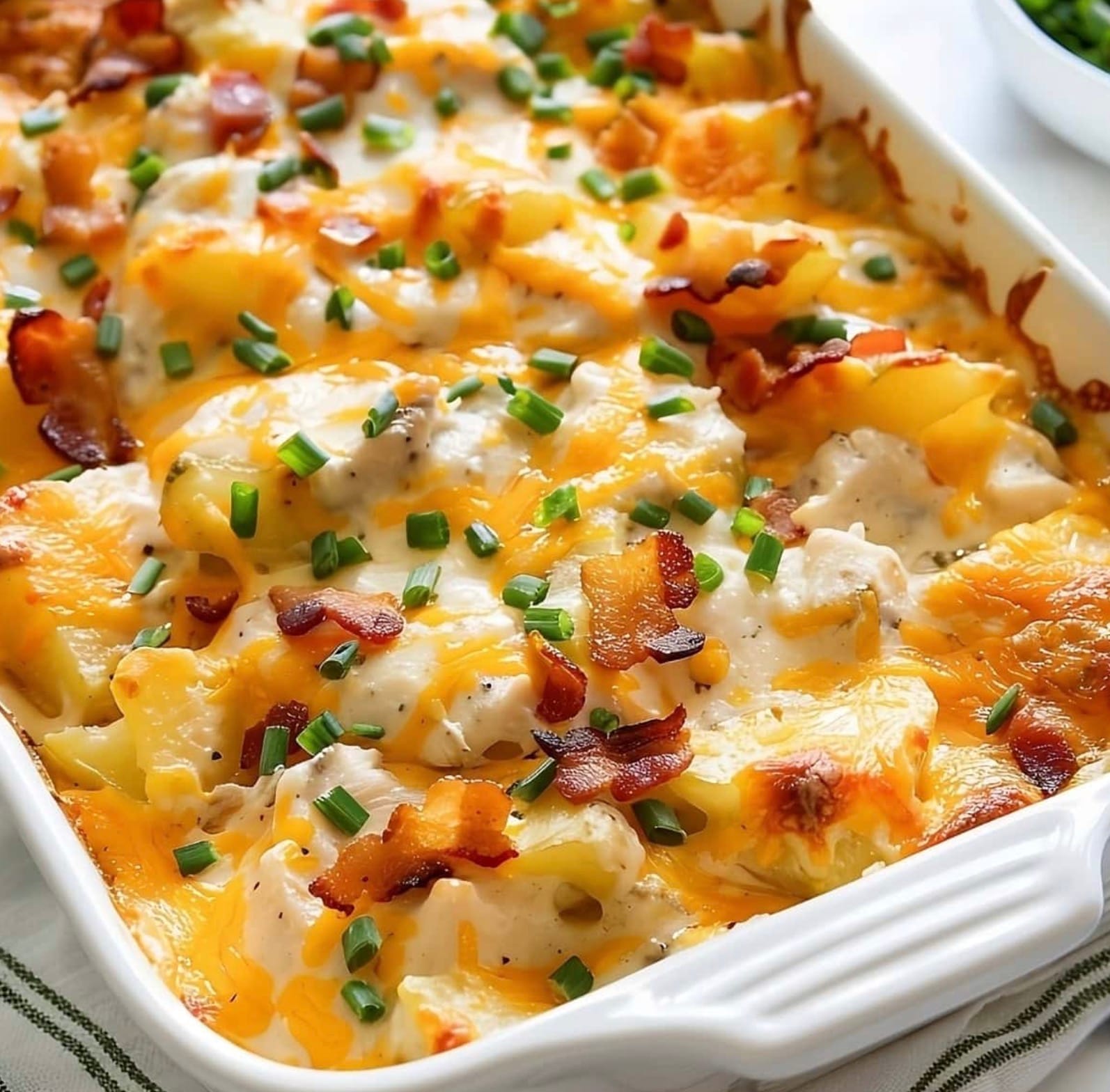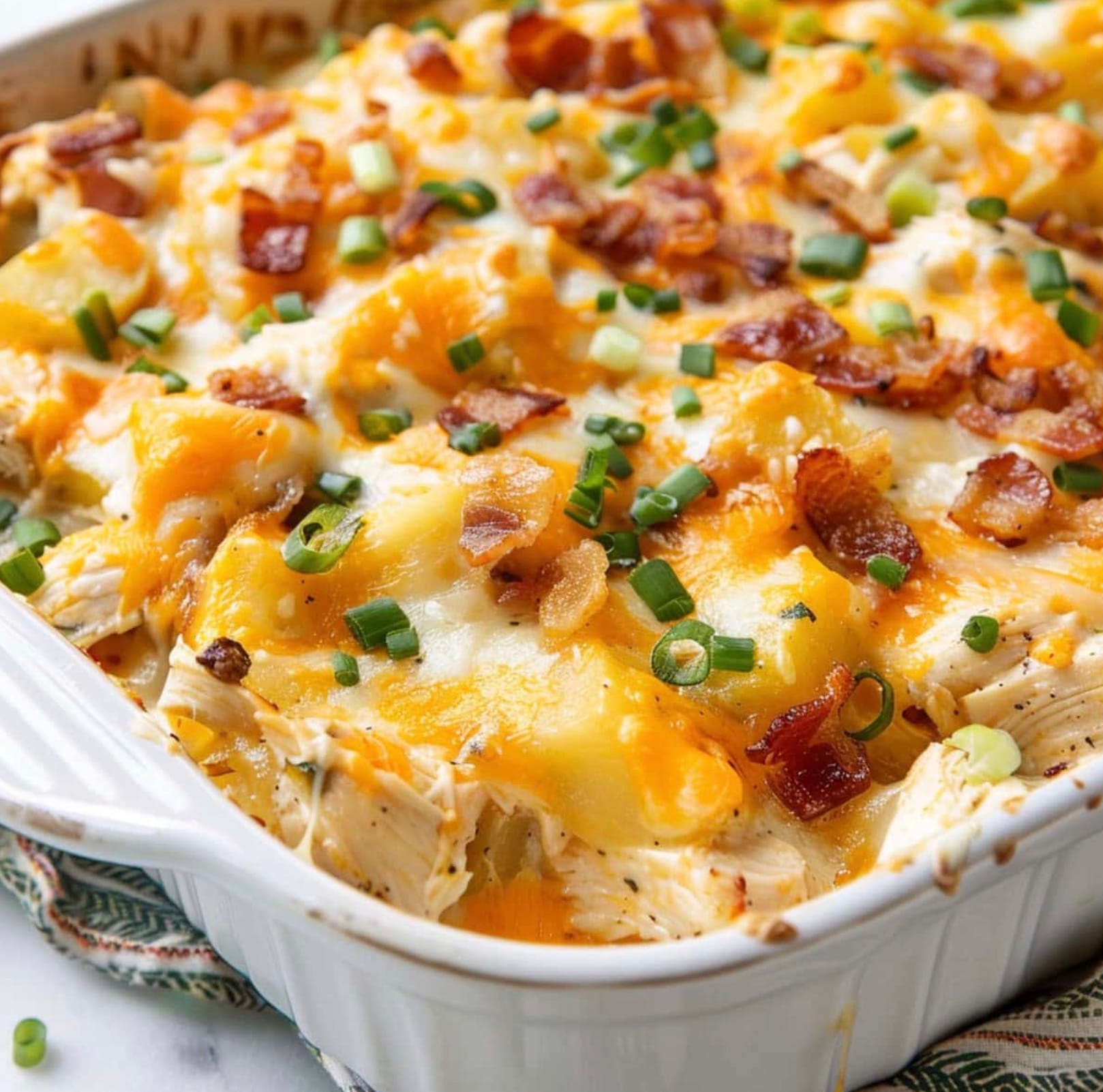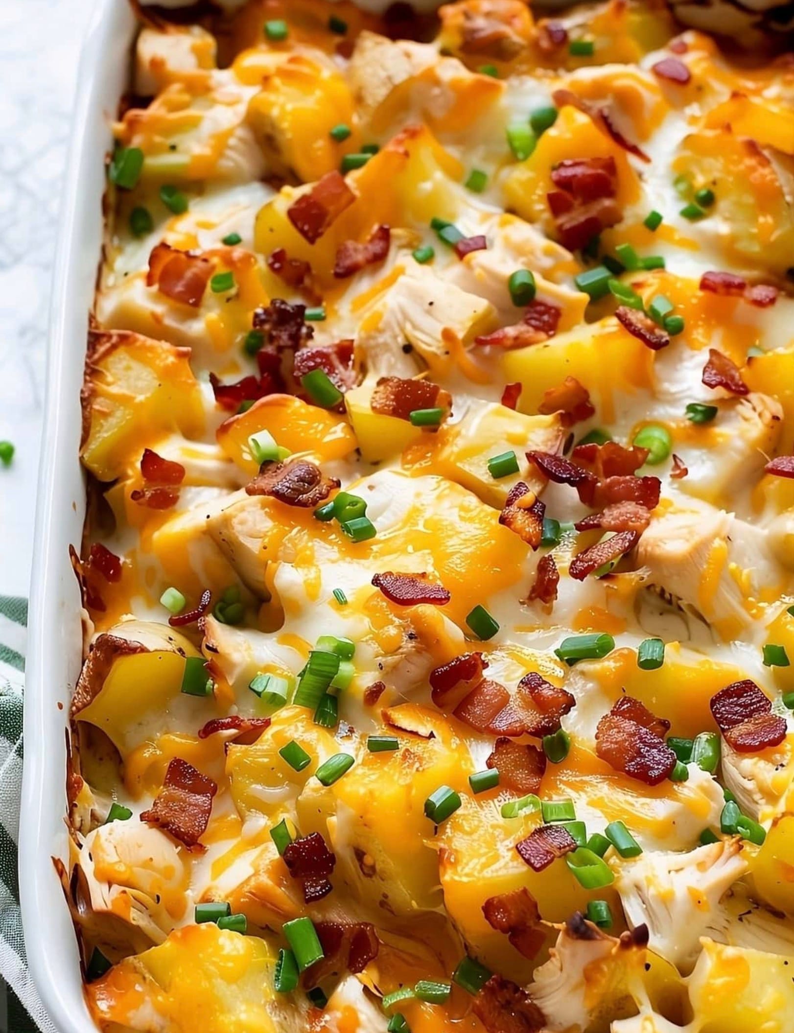 Are you looking for a warm, filling meal that’s easy to make? This chicken and potato casserole might be just what you need. It’s packed with tasty ingredients like bacon, cheese, and green onions. You can make this yummy dish in just over an hour, and it serves six people.