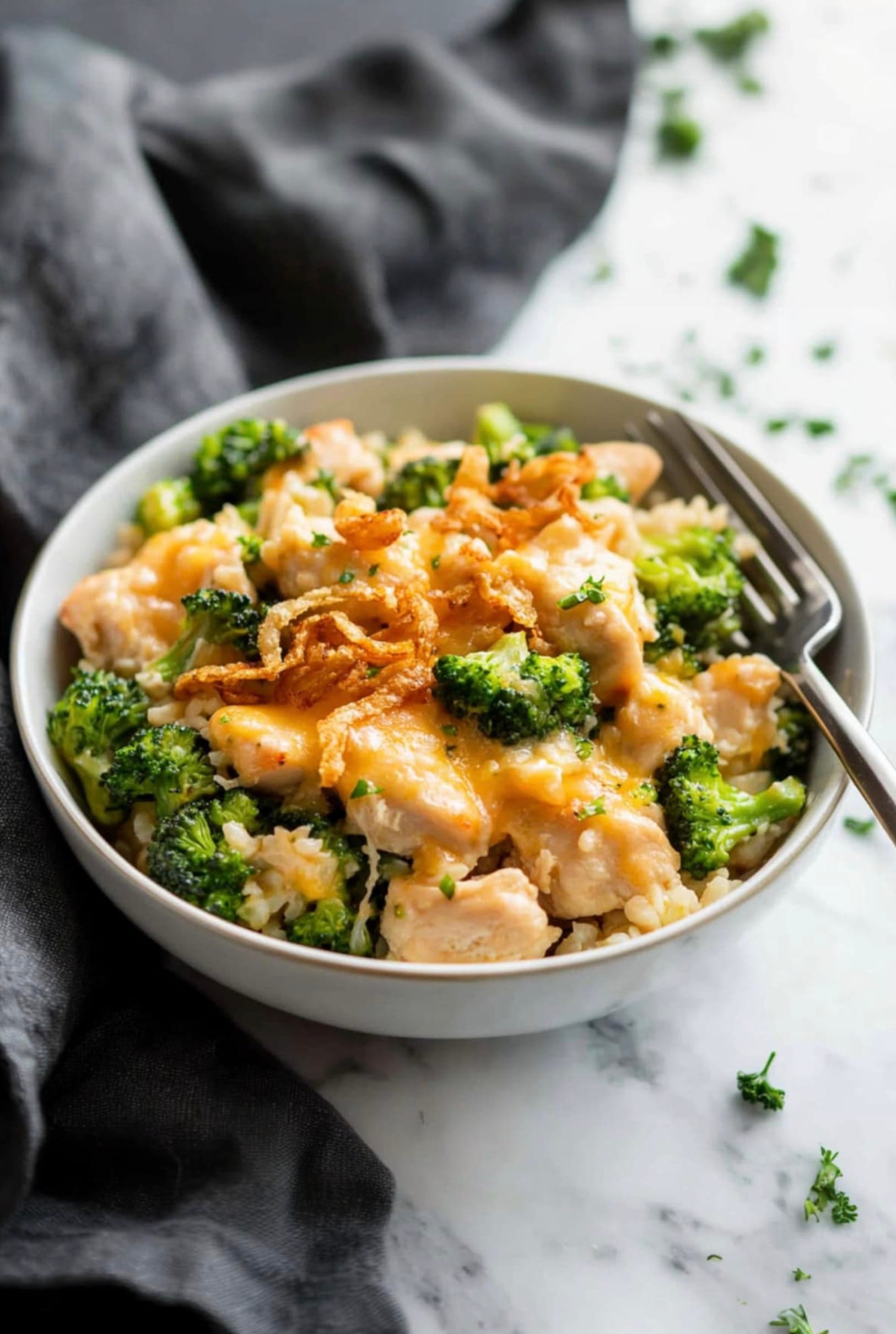 Chicken broccoli rice casserole is a tasty, filling meal you can make for your family. This one-dish wonder combines tender chicken, fluffy rice, and crisp broccoli in a creamy, cheesy sauce. You’ll love how easy it is to put together. With just 15 minutes of prep time, you can have a hot, comforting dinner ready in under an hour.