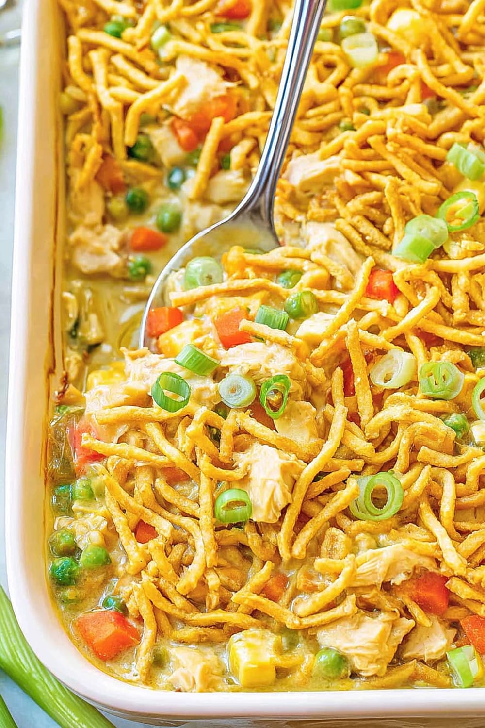 - 10 Allow the casserole to cool for 5-10 minutes before serving. This resting time allows the mixture to thicken slightly as it cools, making it easier to serve neat portions. Garnish with sliced green onions just before serving for a fresh color contrast and mild onion flavor.