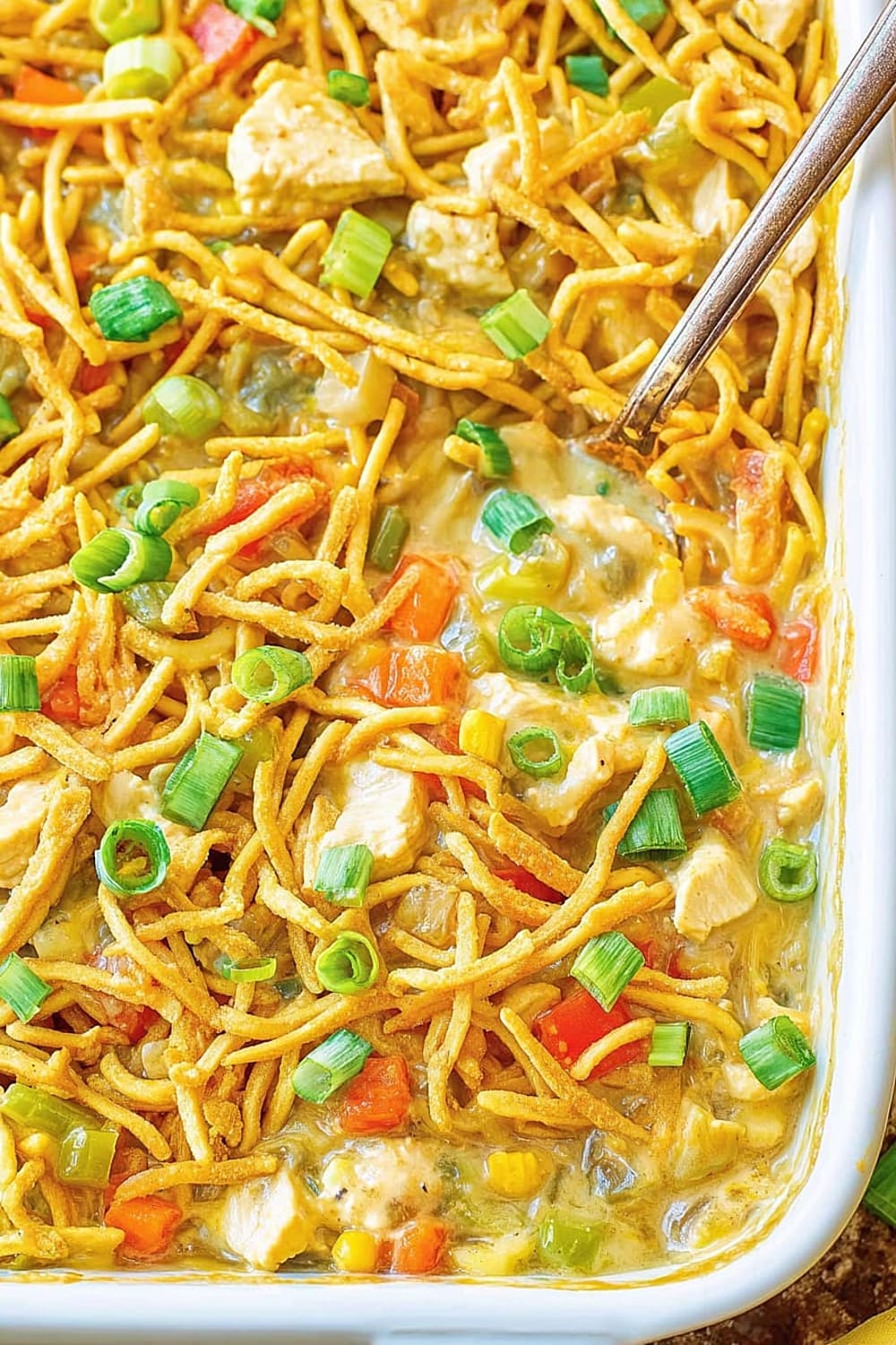 Picture all those classic chow mein flavors – savory chicken, crispy water chestnuts, and those addictive crunchy noodles – but transformed into a bubbling, golden casserole that’ll make your kitchen smell like pure happiness.