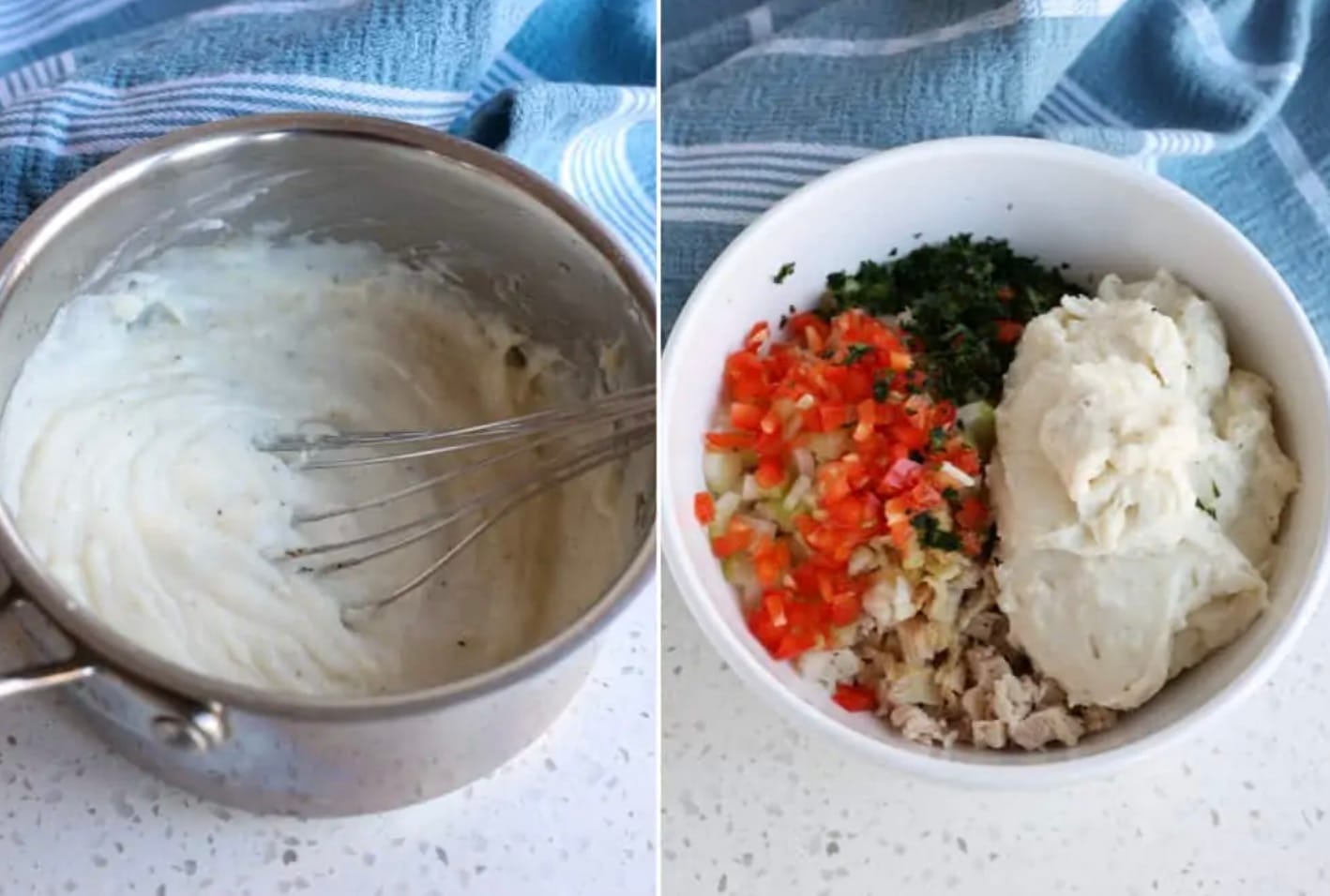 Make sure you have all these ingredients ready before you start cooking. The finely chopped veggies add great flavor and texture to your croquettes.