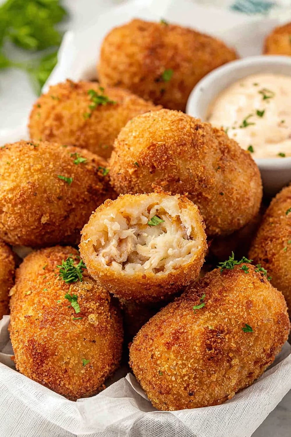 - Remove finished croquettes to a paper towel-lined plate to drain excess oil. Garnish immediately with fresh chopped parsley and serve hot alongside the chilled remoulade sauce for the perfect temperature contrast.