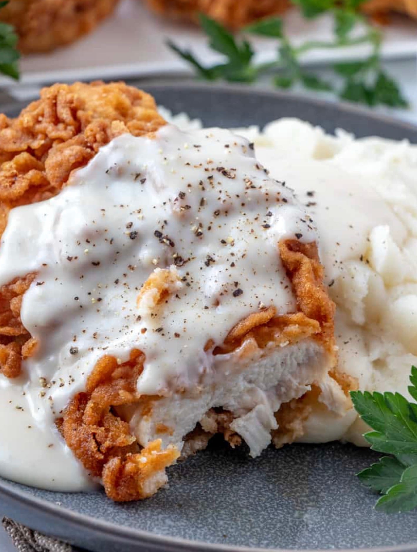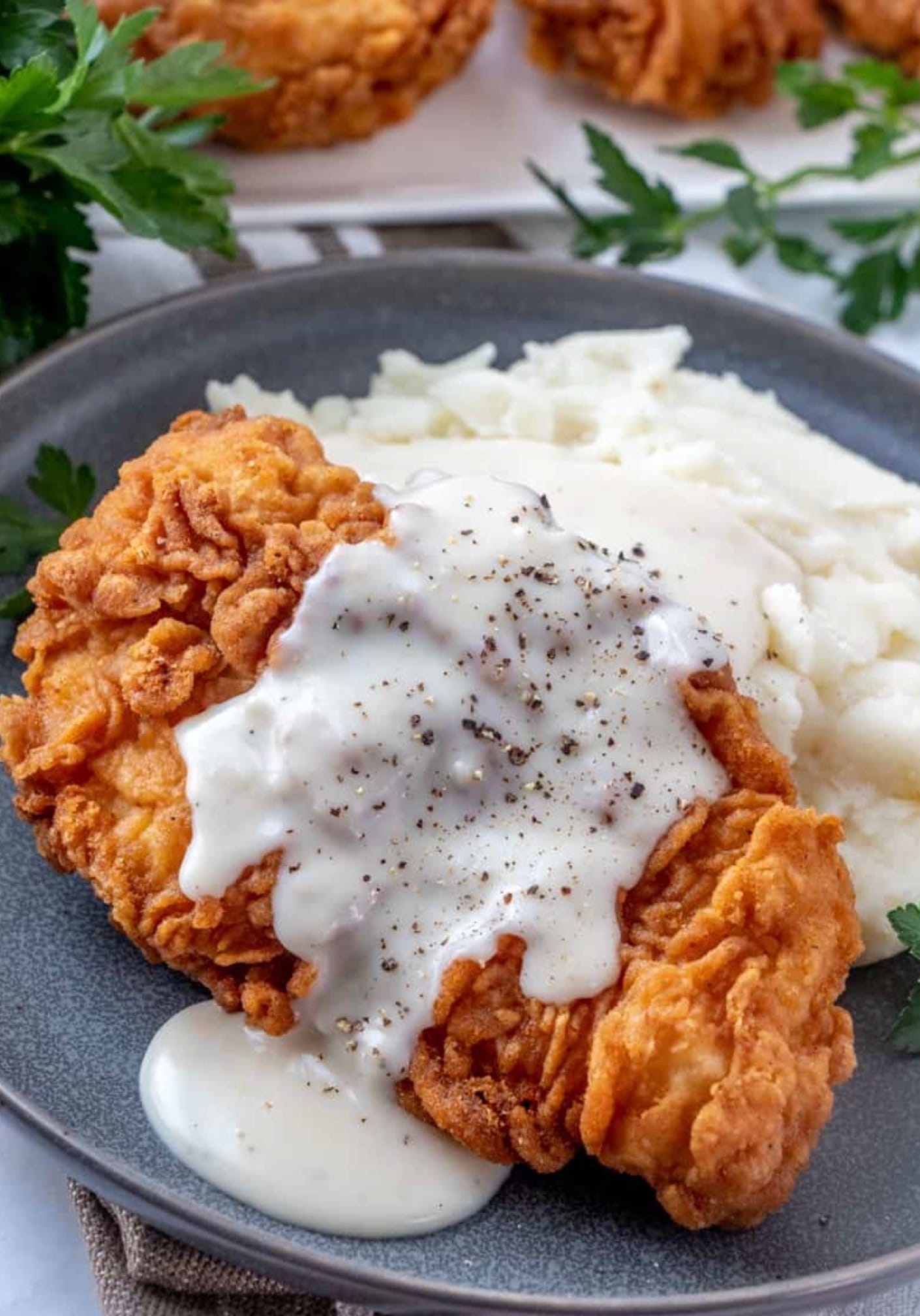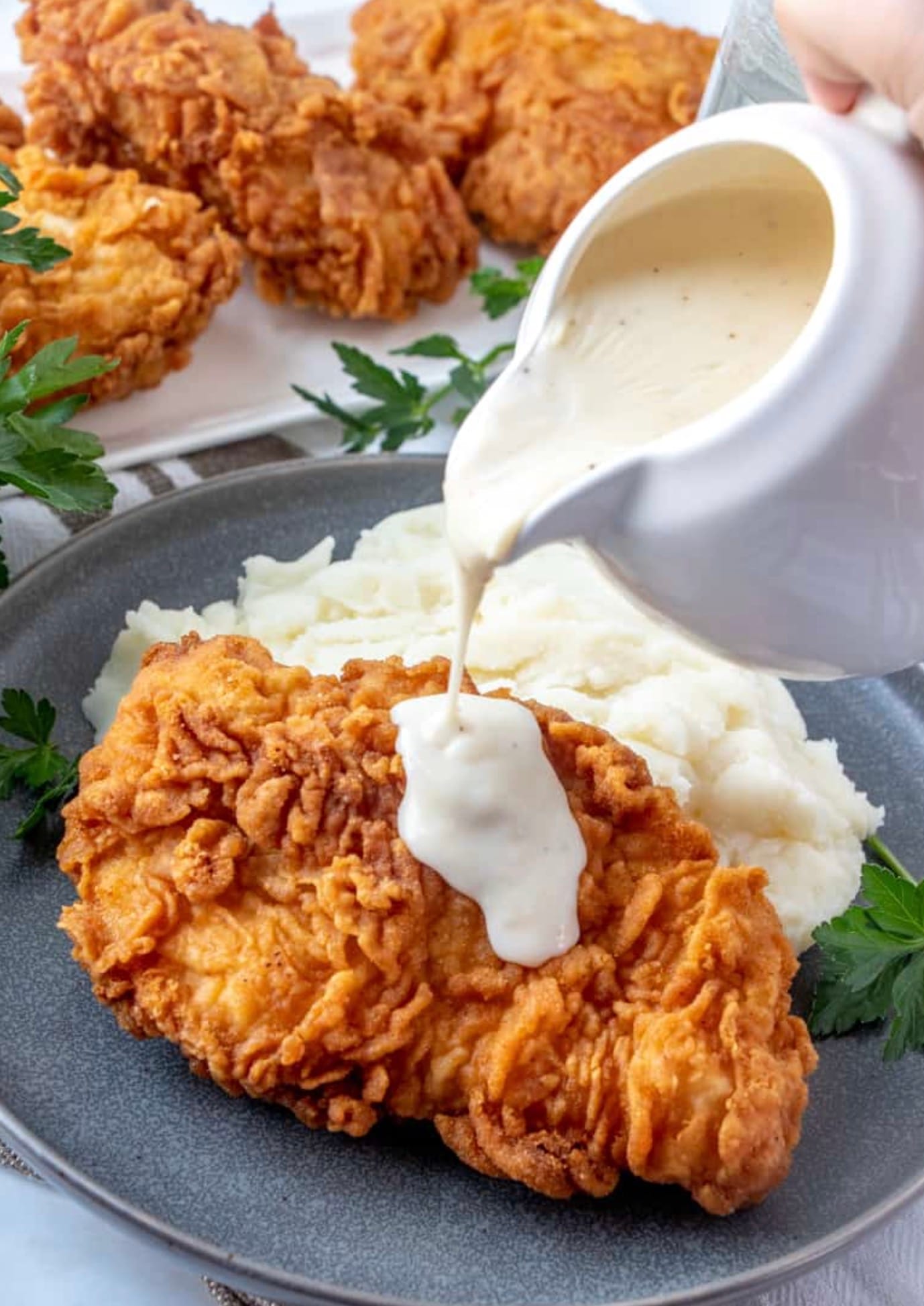 Serve chicken with gravy poured over top. Enjoy your crispy, flavorful meal!