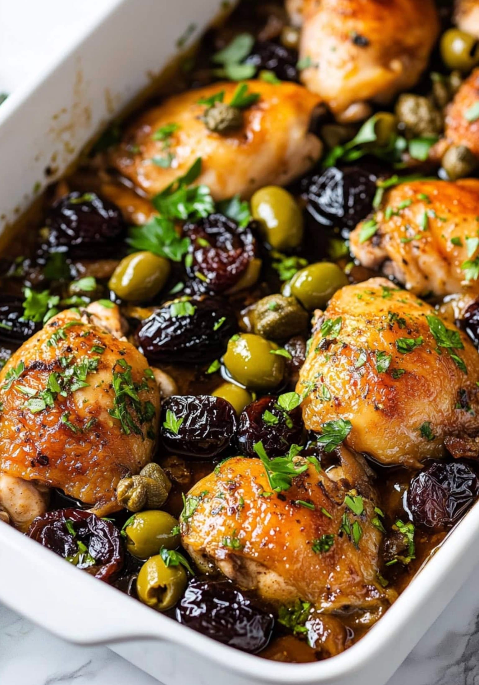 This mix of ingredients gives Chicken Marbella its unique flavor. The prunes add sweetness, while the olives and capers bring a salty kick. The garlic and oregano give it a nice herb taste.