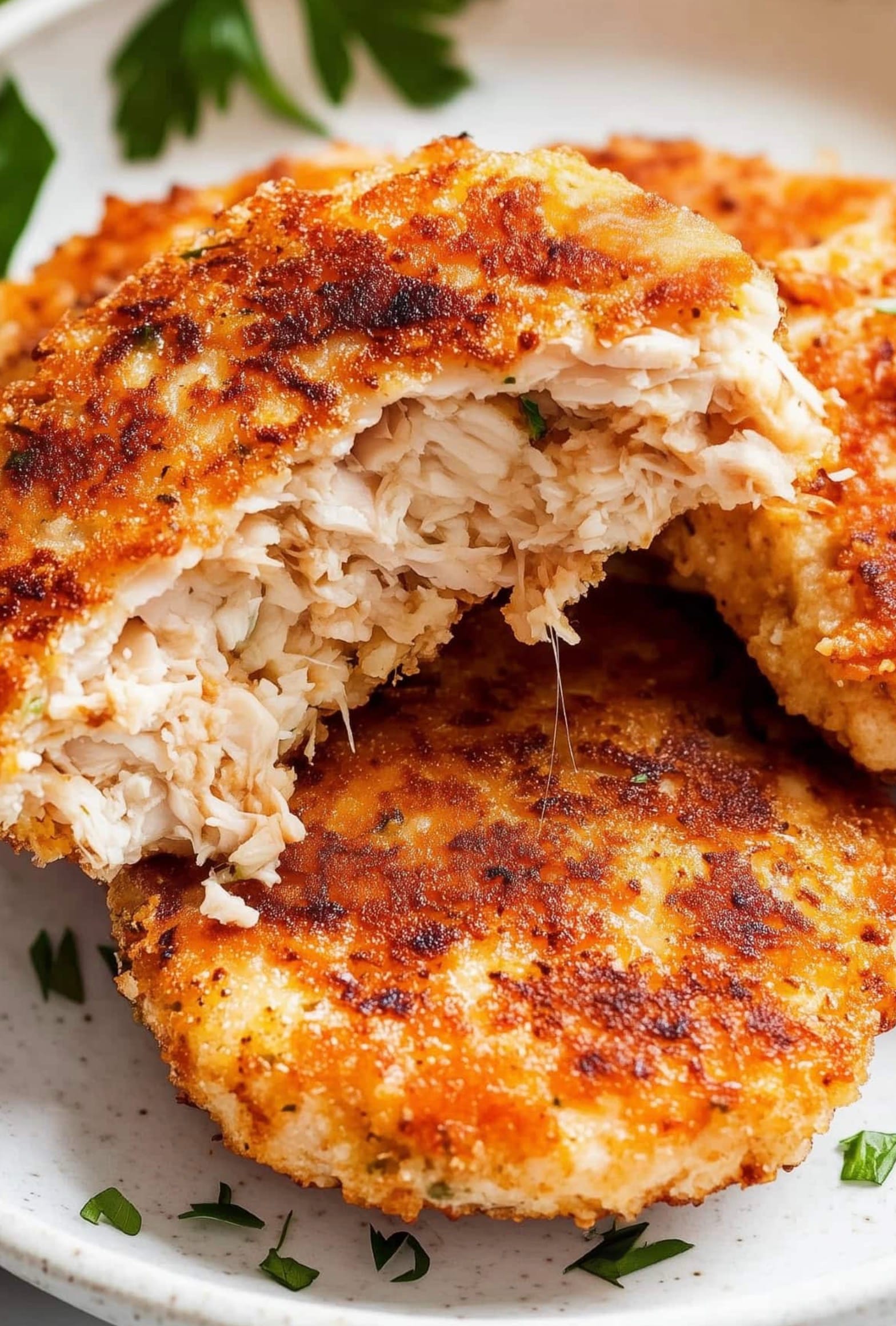 The recipe uses simple ingredients like shredded chicken, mayo, cheese, and spices. You’ll mix everything in a bowl, form patties, and fry them until golden brown. The result is a crispy, flavorful dish that’s sure to please everyone at the table.